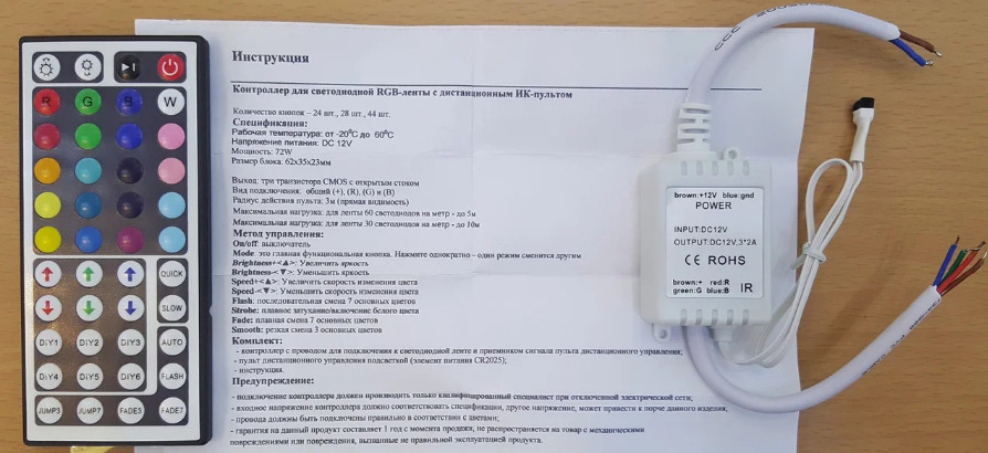 Контроллер для светодиодной ленты RGB 72W 12V инфракрасный пульт 44 кнопки