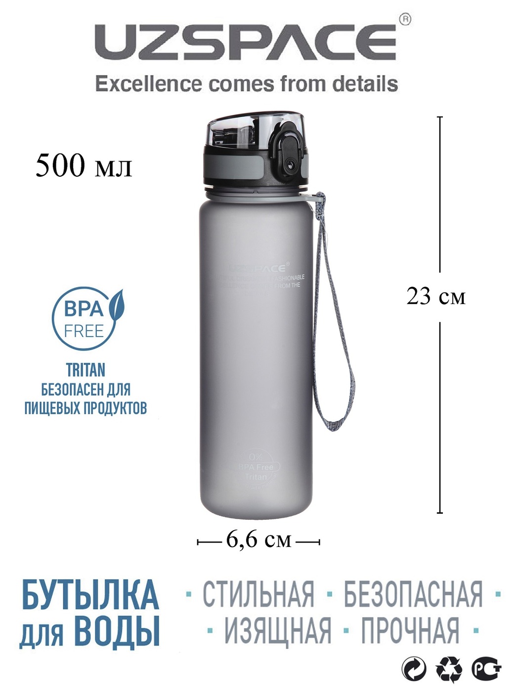 Спортивная бутылка UZSPACE Colorful Frosted Series Button lid 500 0.5, серый
