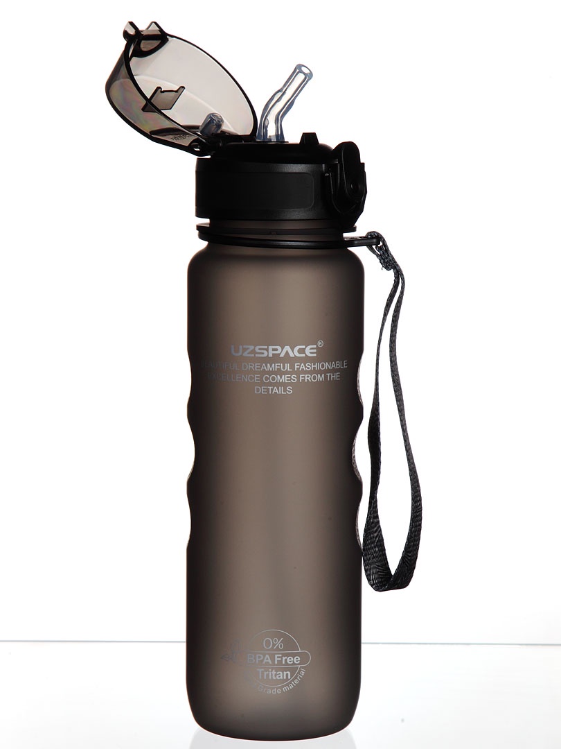 Бутылка для воды UZSPACE Sports Bottle Series Straw lid 500, 3043/black, черный