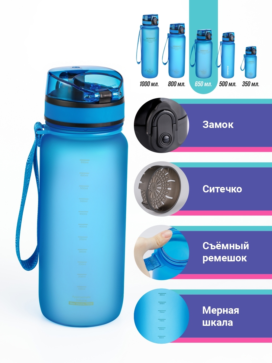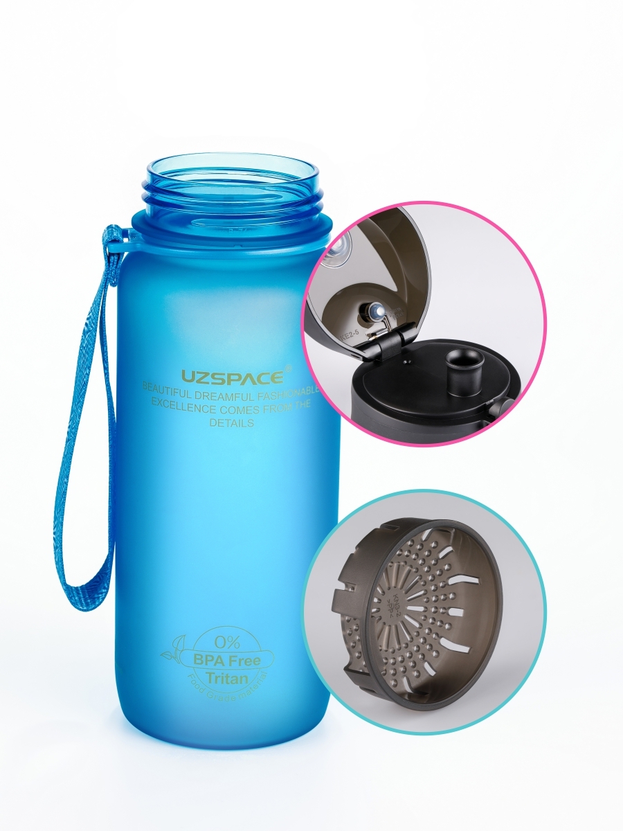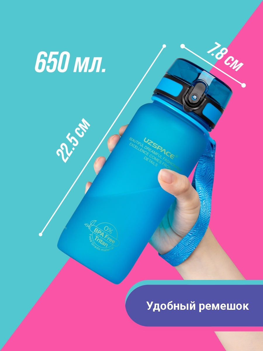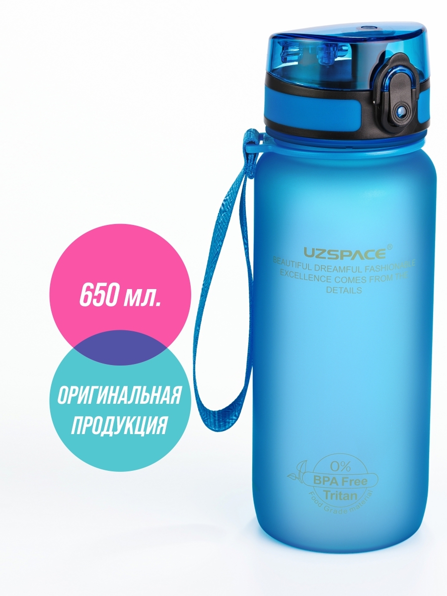 Туристическая бутылка для воды UZSPACE Colorful Frosted Series Button lid 650, синий