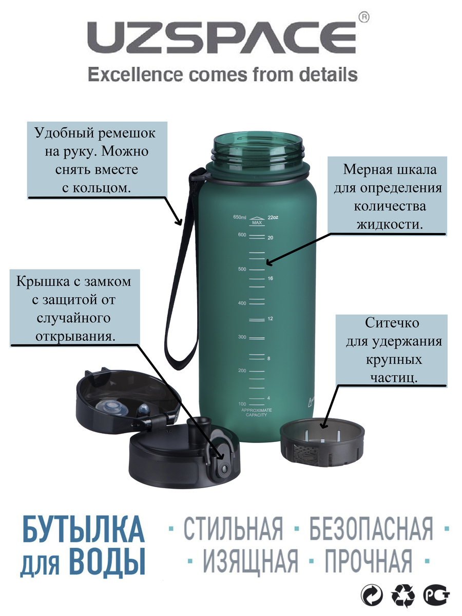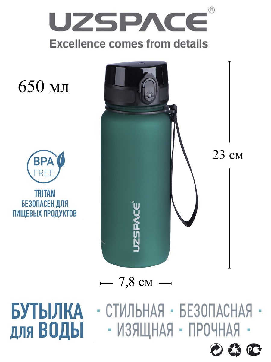 Спортивная бутылка,Colorful Frosted 650UZSPACE,0.65л.,темно-зеленый