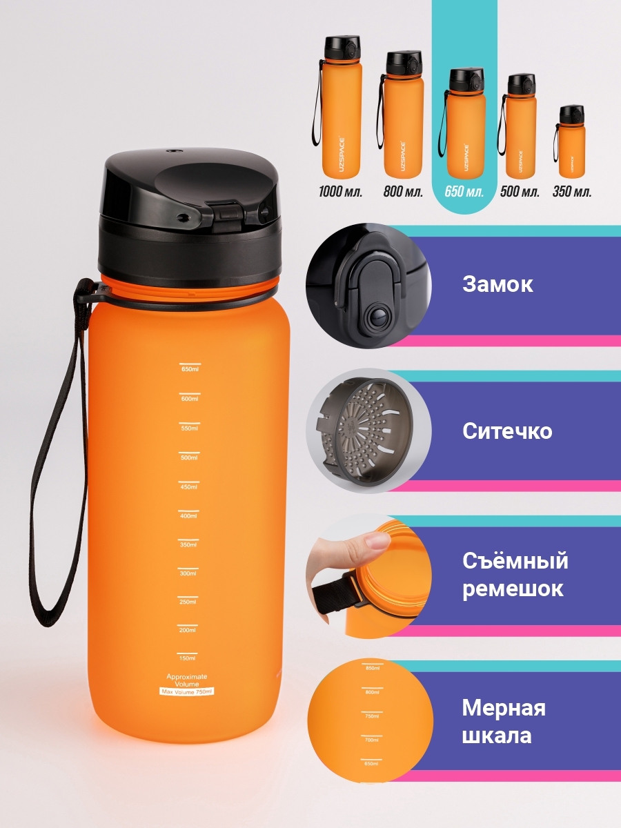 Спортивная бутылка, Colorful Frosted UZSPACE, 650л., оранжевый
