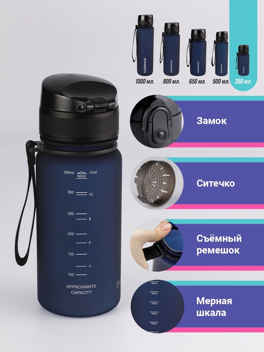 Спортивная бутылка, 3034/ UZSPACE, 350л., темно-синий