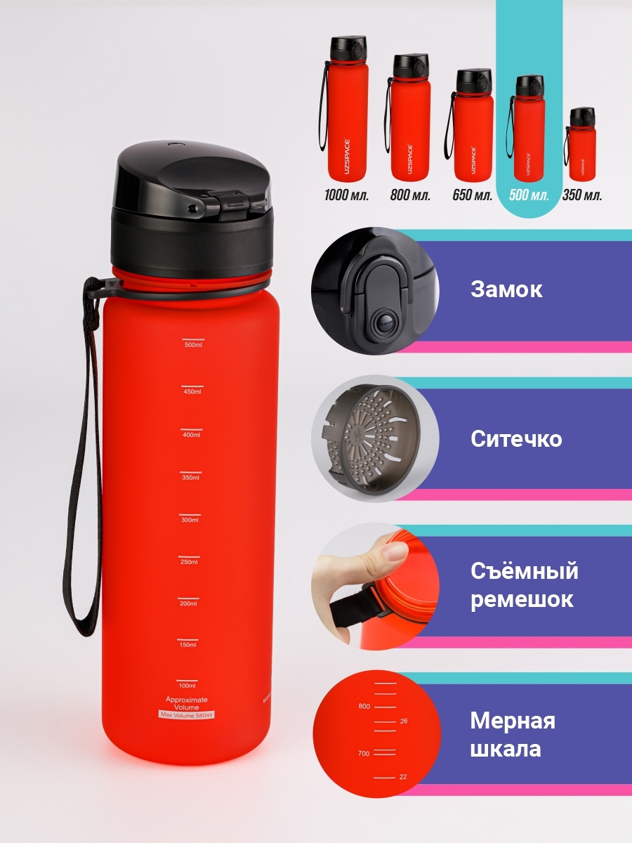 Спортивная бутылка, Colorful Frosted UZSPACE, 500л., красный
