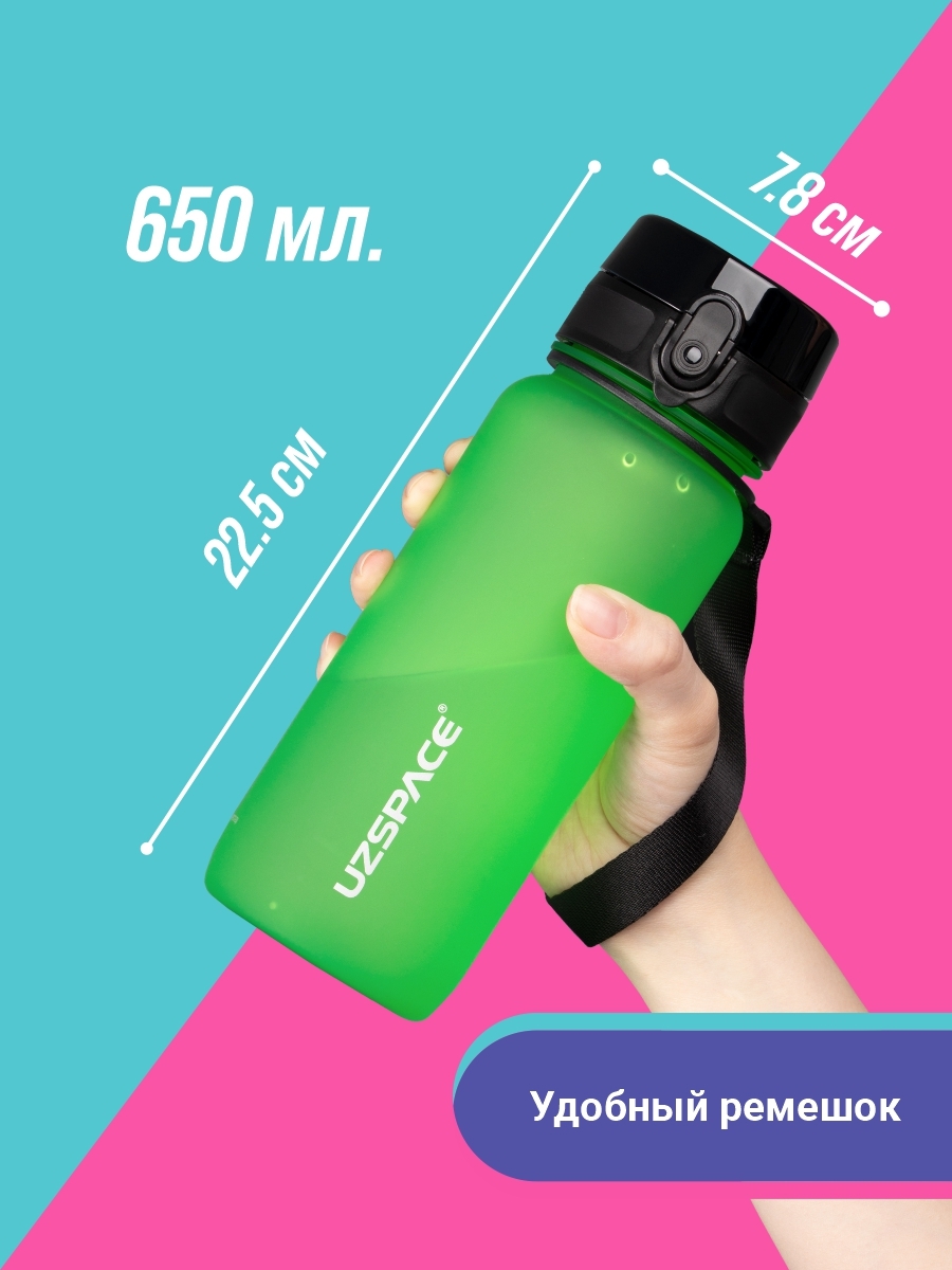 Спортивная бутылка, Colorful Frosted UZSPACE, 650л., темно-зеленый