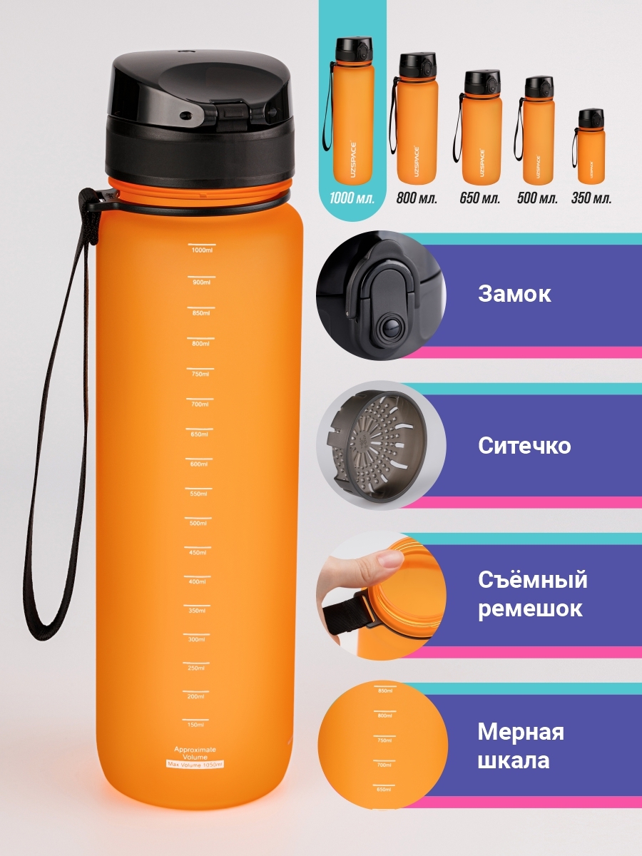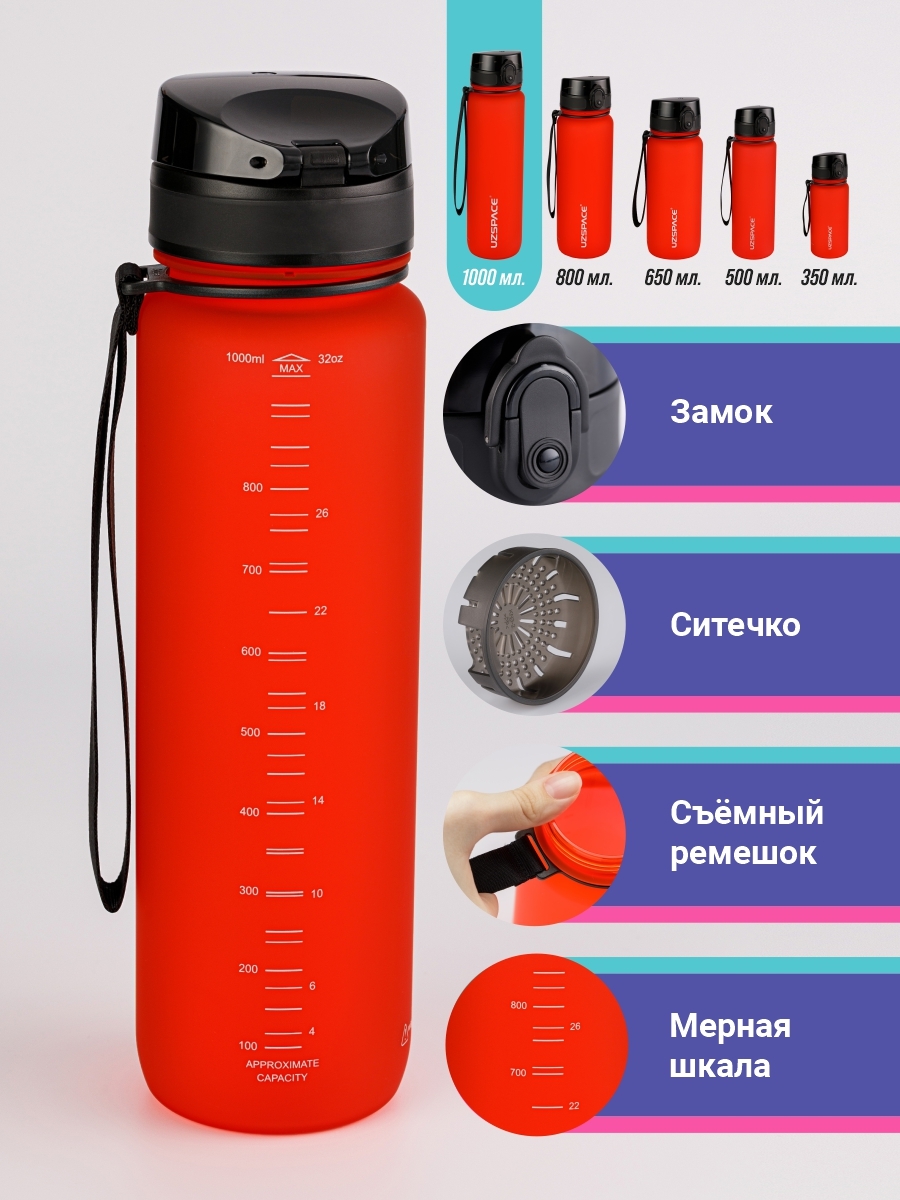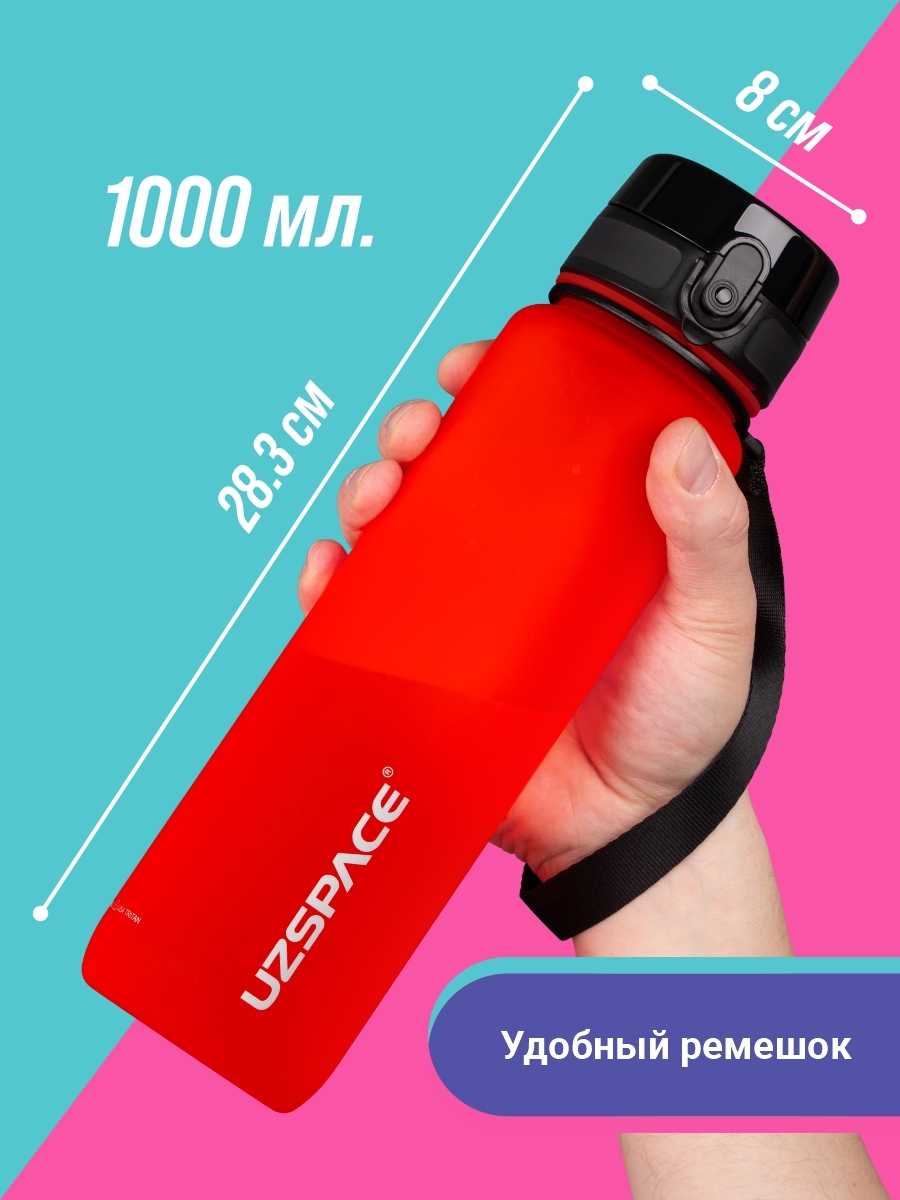 Спортивная бутылка, Colorful Frosted UZSPACE, 1000л., красный