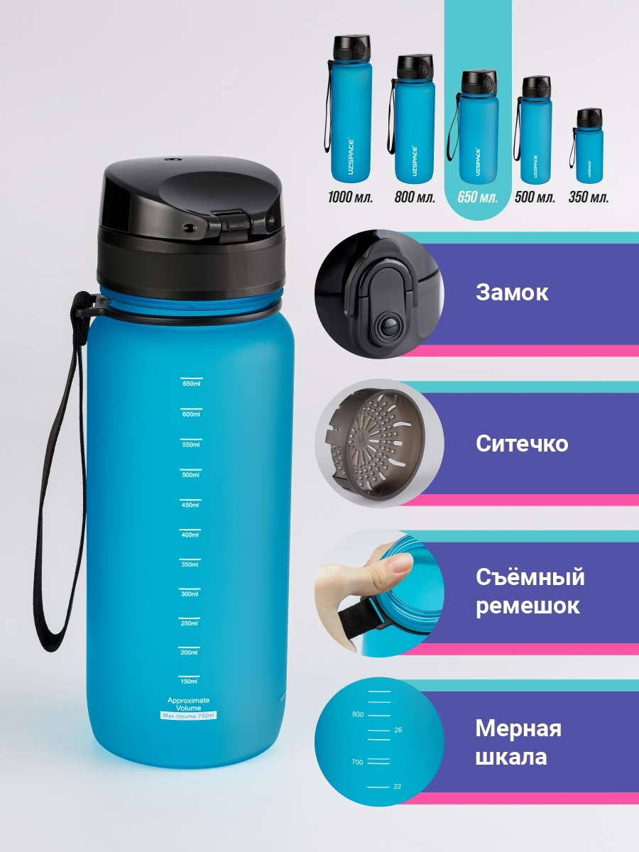 Спортивная бутылка, Colorful Frosted UZSPACE, 650л., голубой