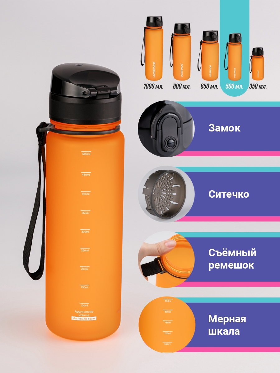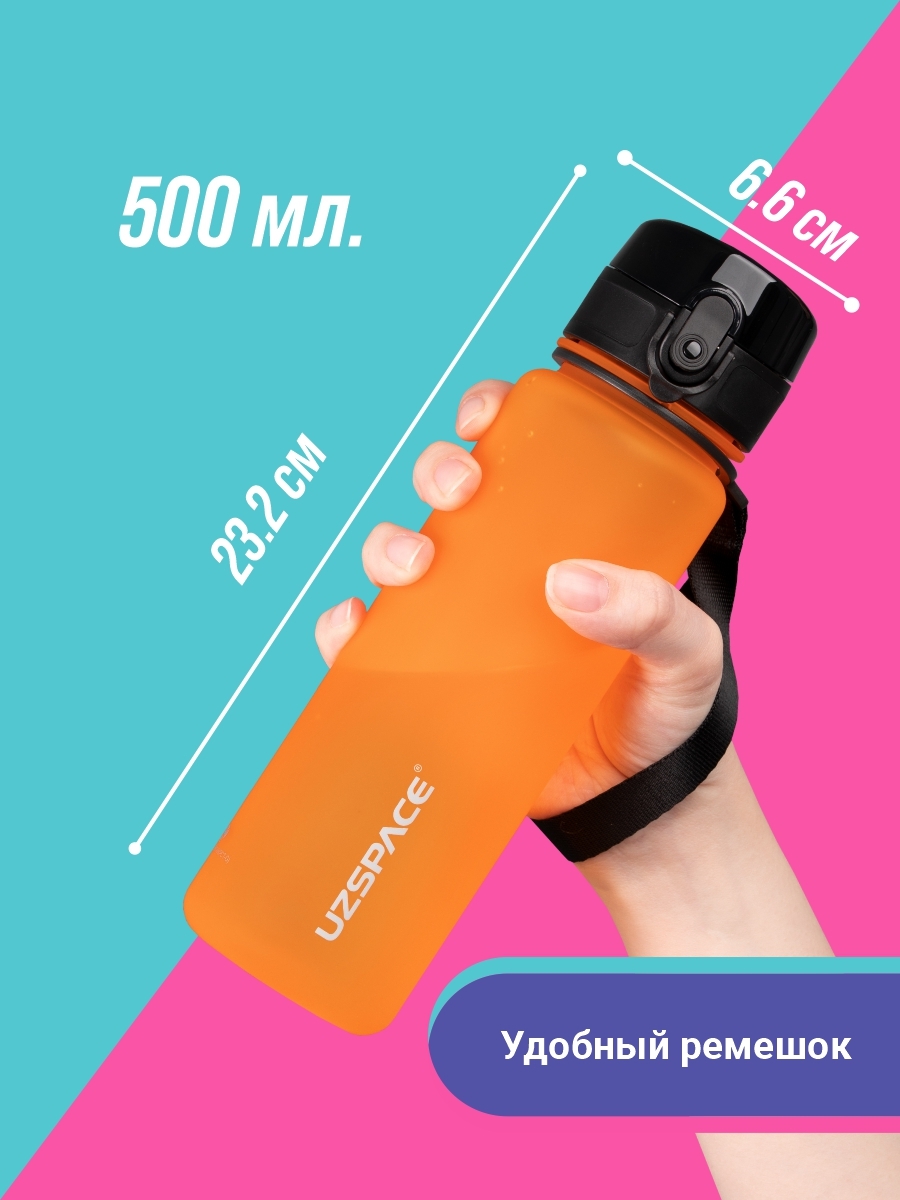 Спортивная бутылка, Colorful Frosted 1000 UZSPACE, 500л., оранжевый
