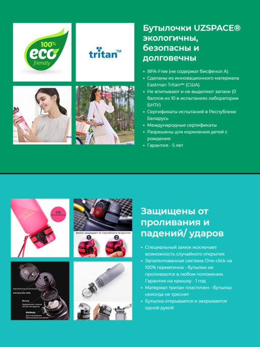 Спортивная бутылка UZSPACE Magic Ion Series Button lid 500, зеленый