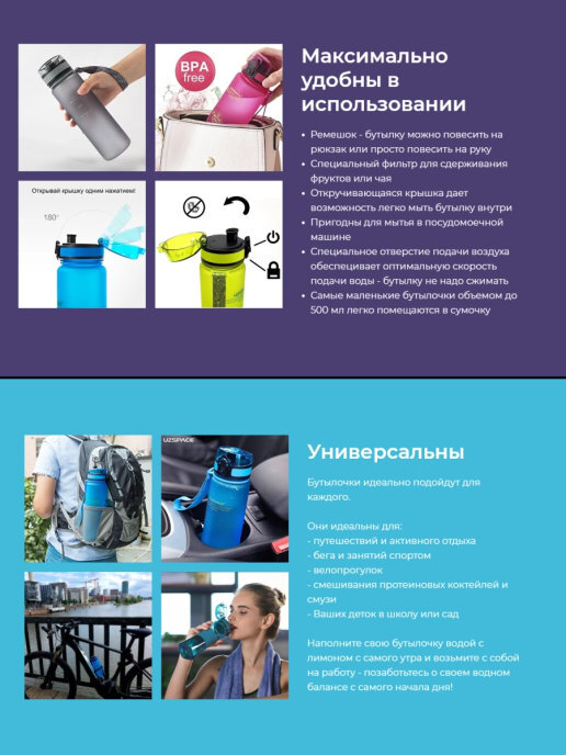 Спортивная бутылка UZSPACE Sports Bottle 500 0,5мл, фиолетовый