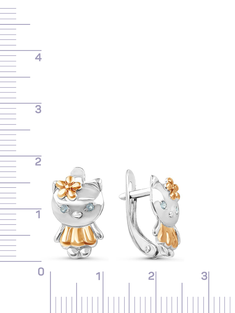 VALTERA Серьги детские котята из серебра 925 пробы с покрытием золота 585 пробы с фианитами 118088