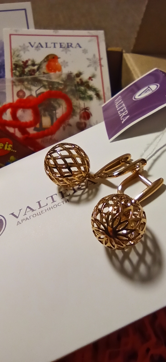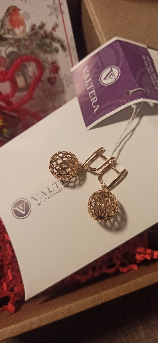 VALTERA Серьги ажурные шары из серебра 925 пробы с покрытием золота 585 пробы 118214