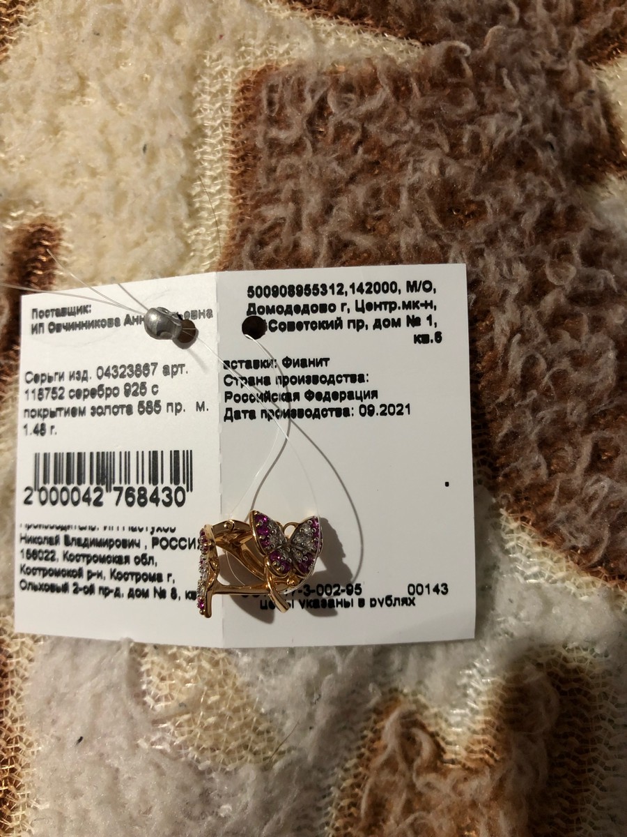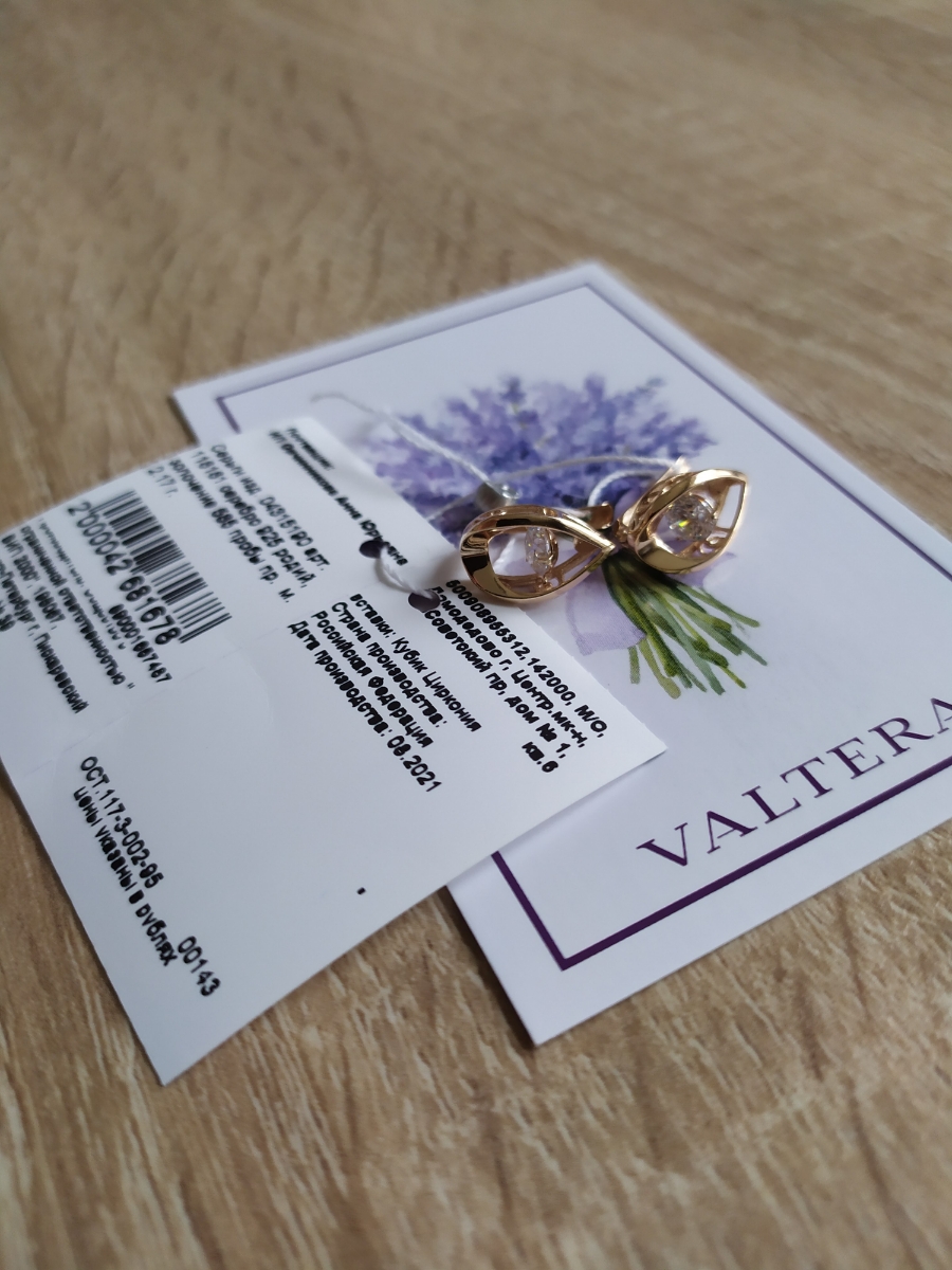 VALTERA Пирсинг в нос из красного золота 585 пробы с кубическим цирконием 118275