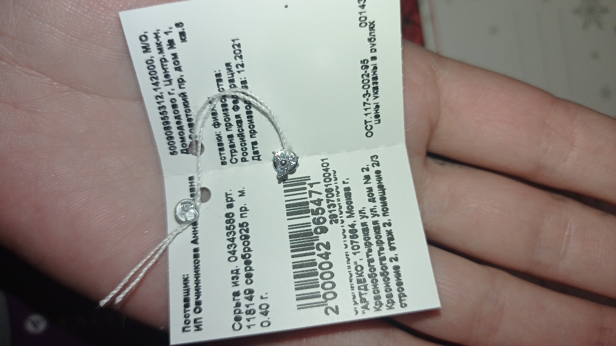 VALTERA Моносерьга гвоздик/пусет (палочка) из серебра 925 пробы, минимализм, унисекс, 118051