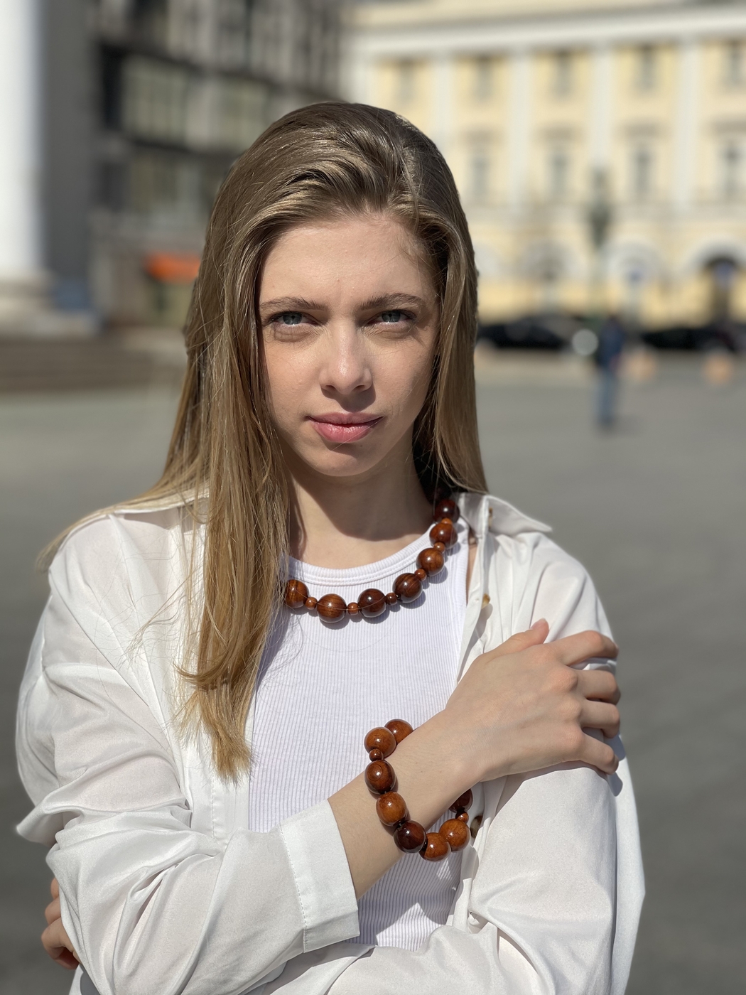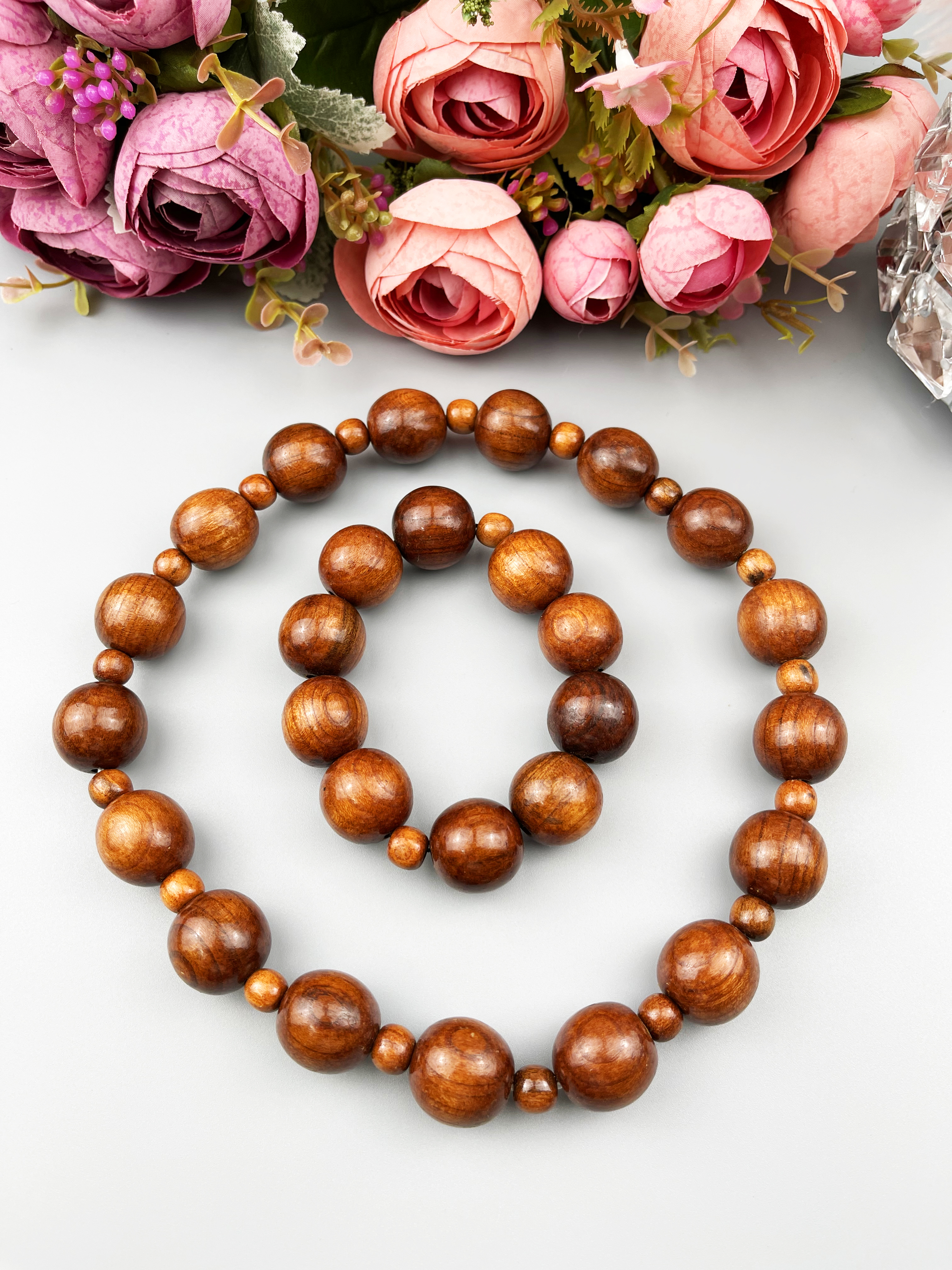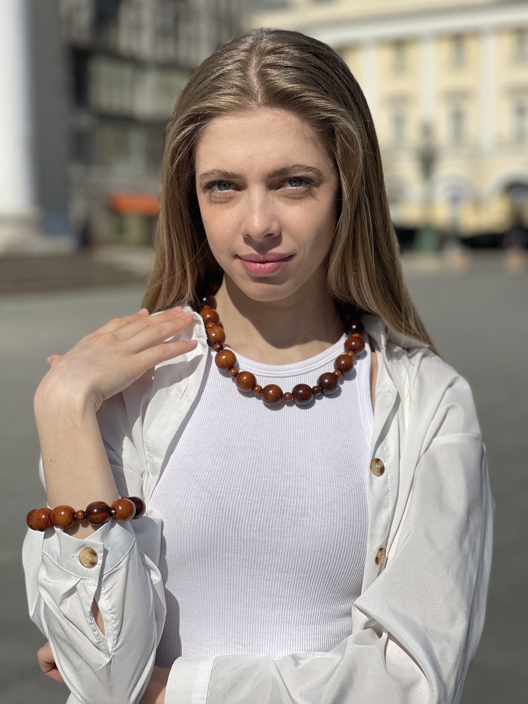 Бижутерия бусы и браслет из дерева / Комплект деревянной бижутерии