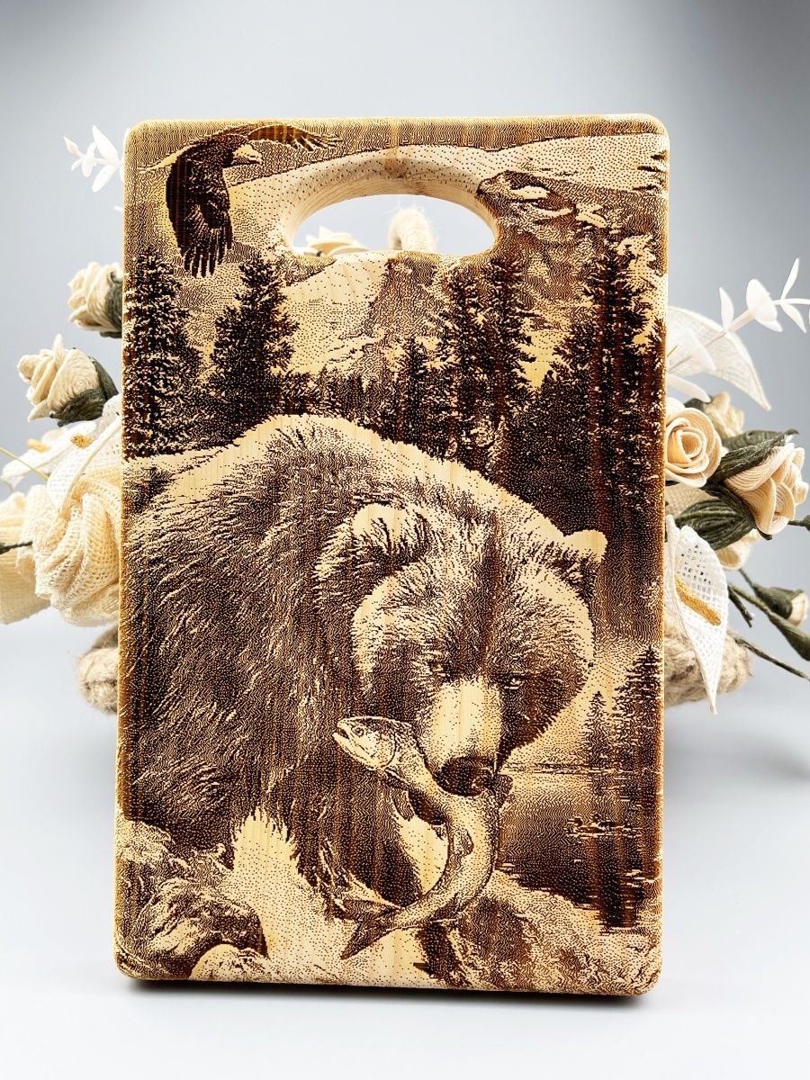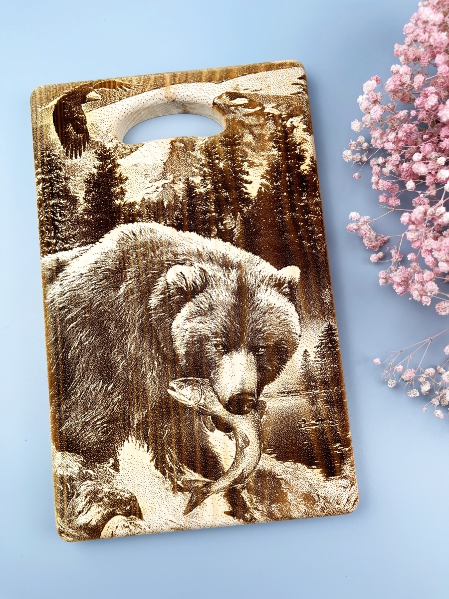 Разделочная доска для продуктов/для разделки/для рыбы/мяса/овощей/кедр/медведь