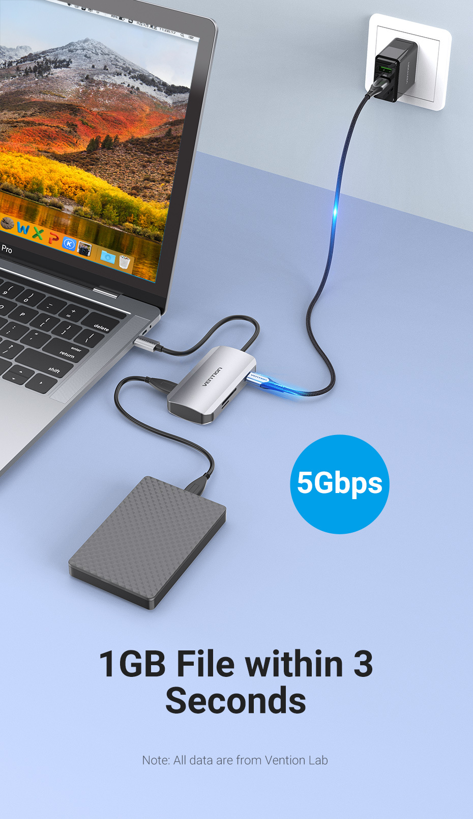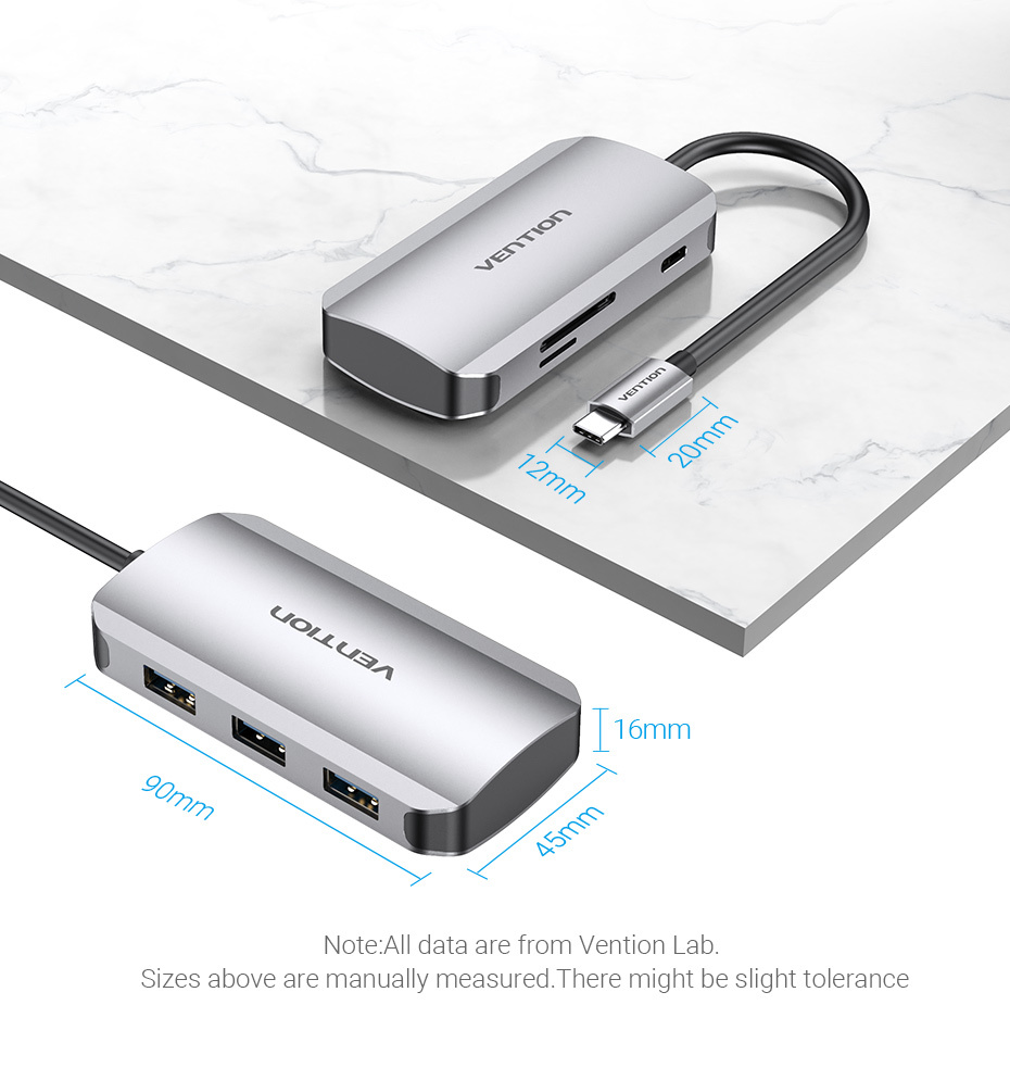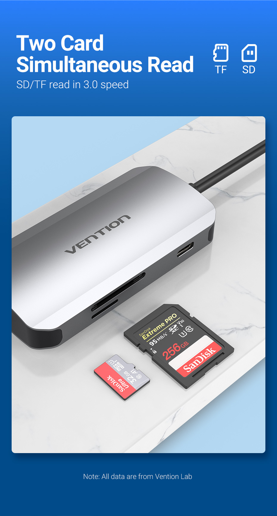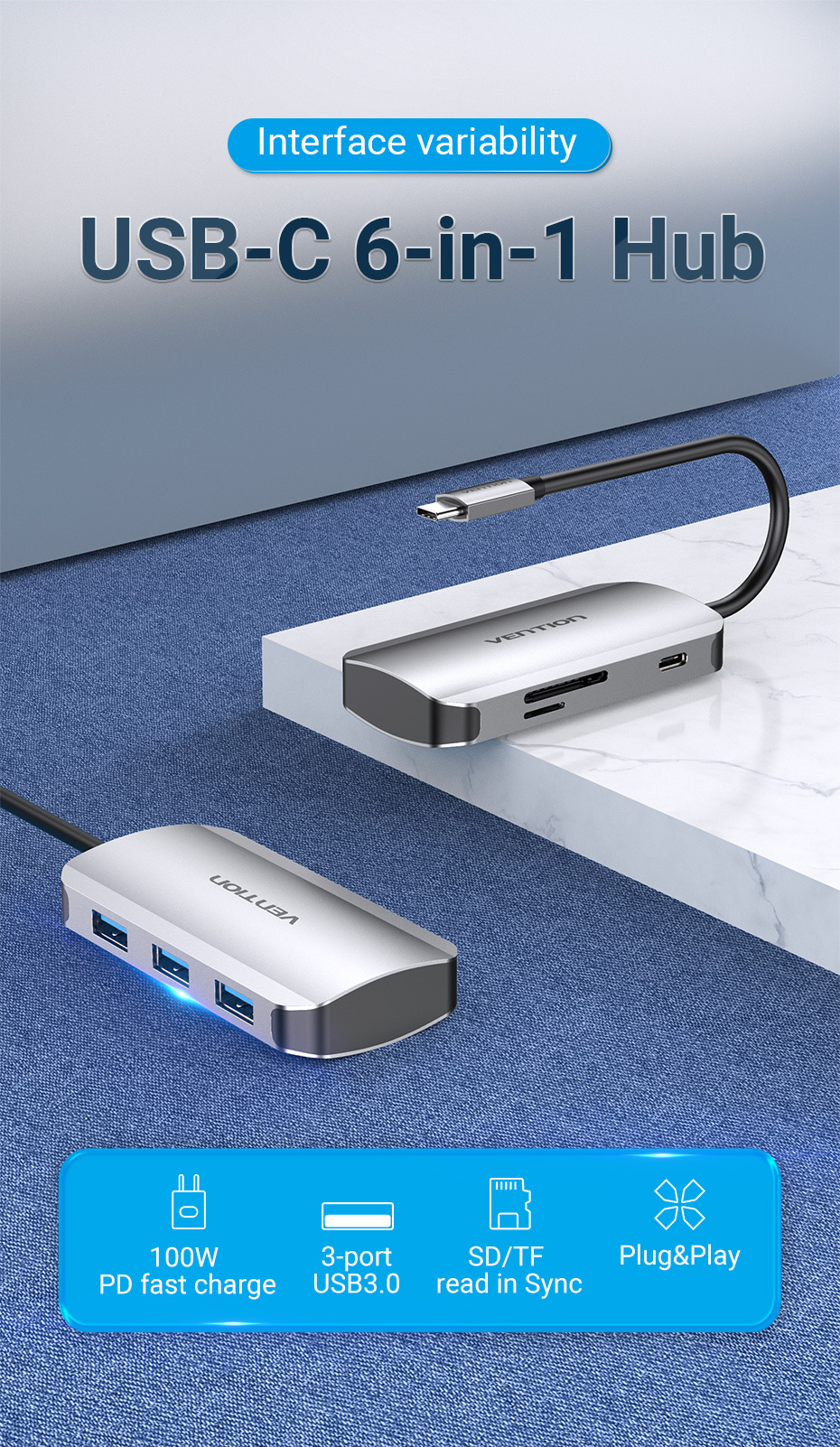 Мультифункциональный хаб USB-C > USB 3.0x3/SD/TF/PD TNHHB Vention