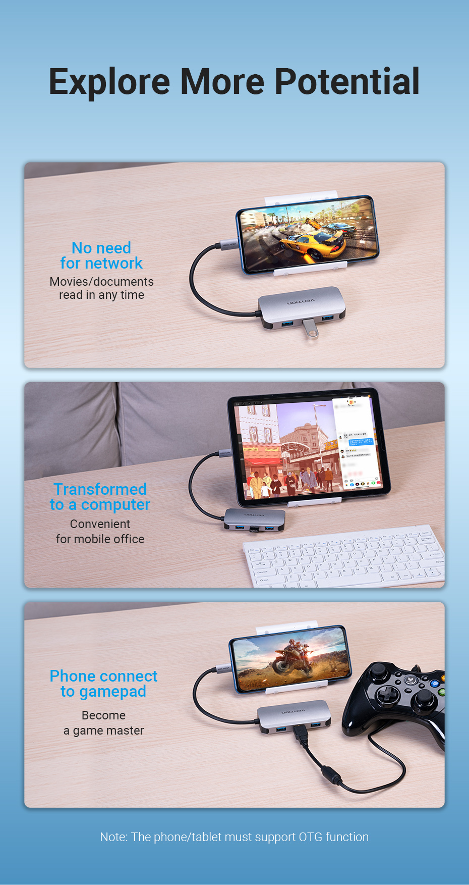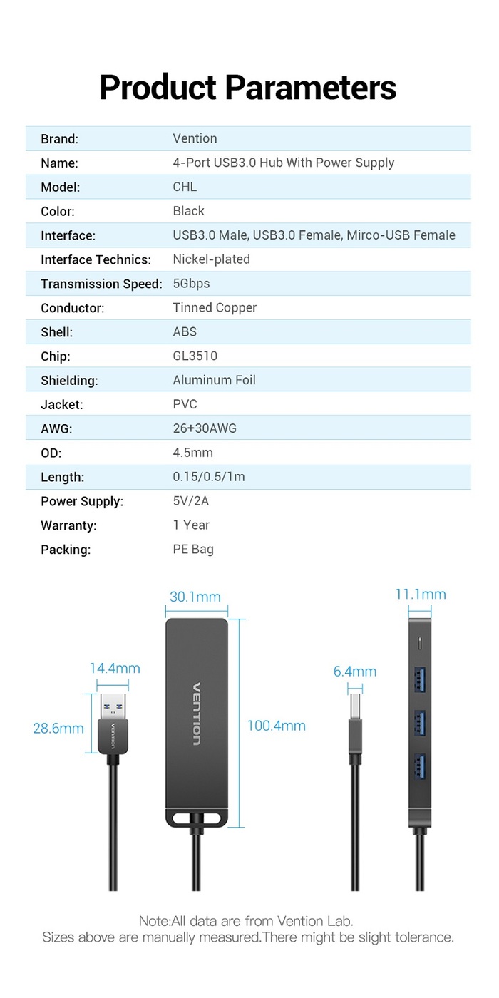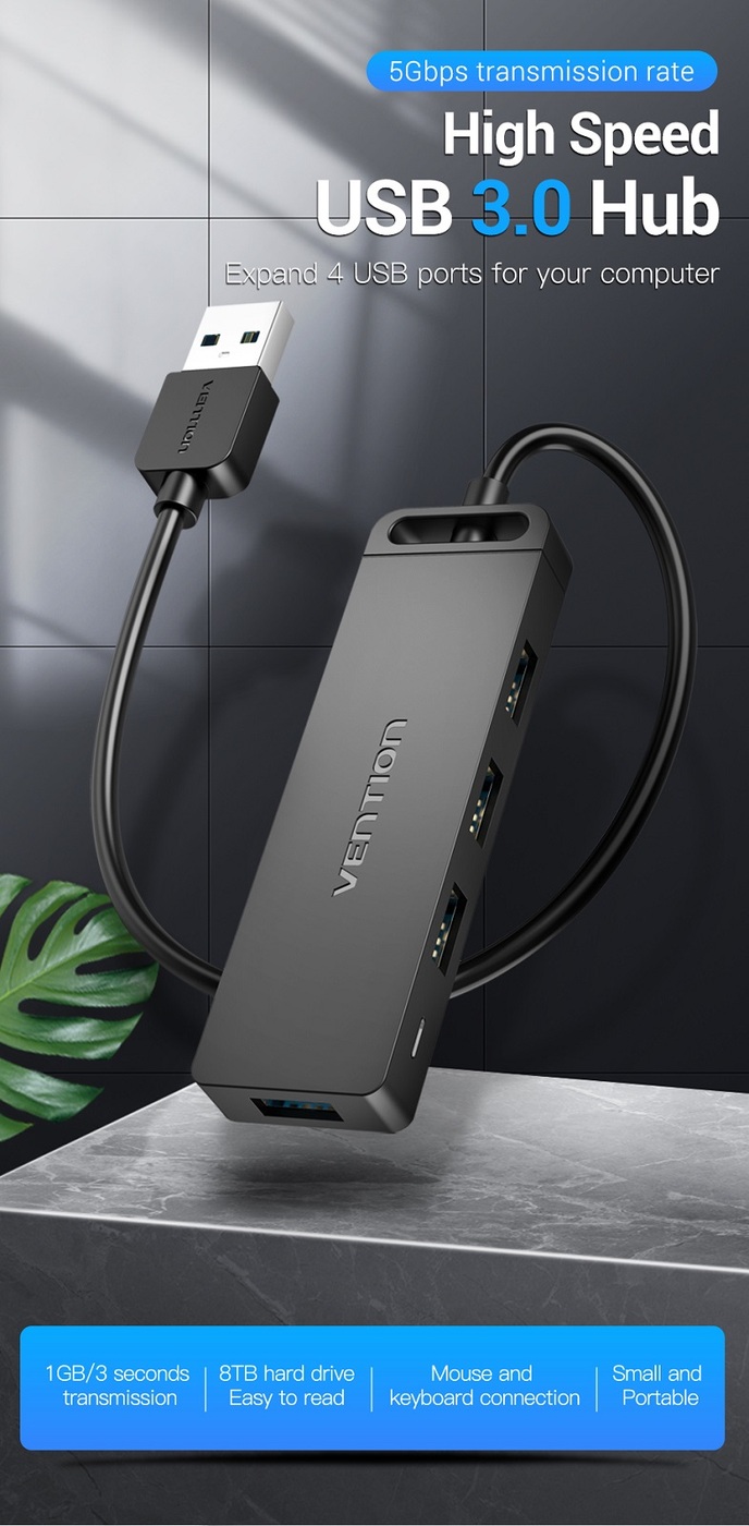 Концентратор Vention OTG USB 3.0 на 4 порта Черный - 0.15м. CHLBB