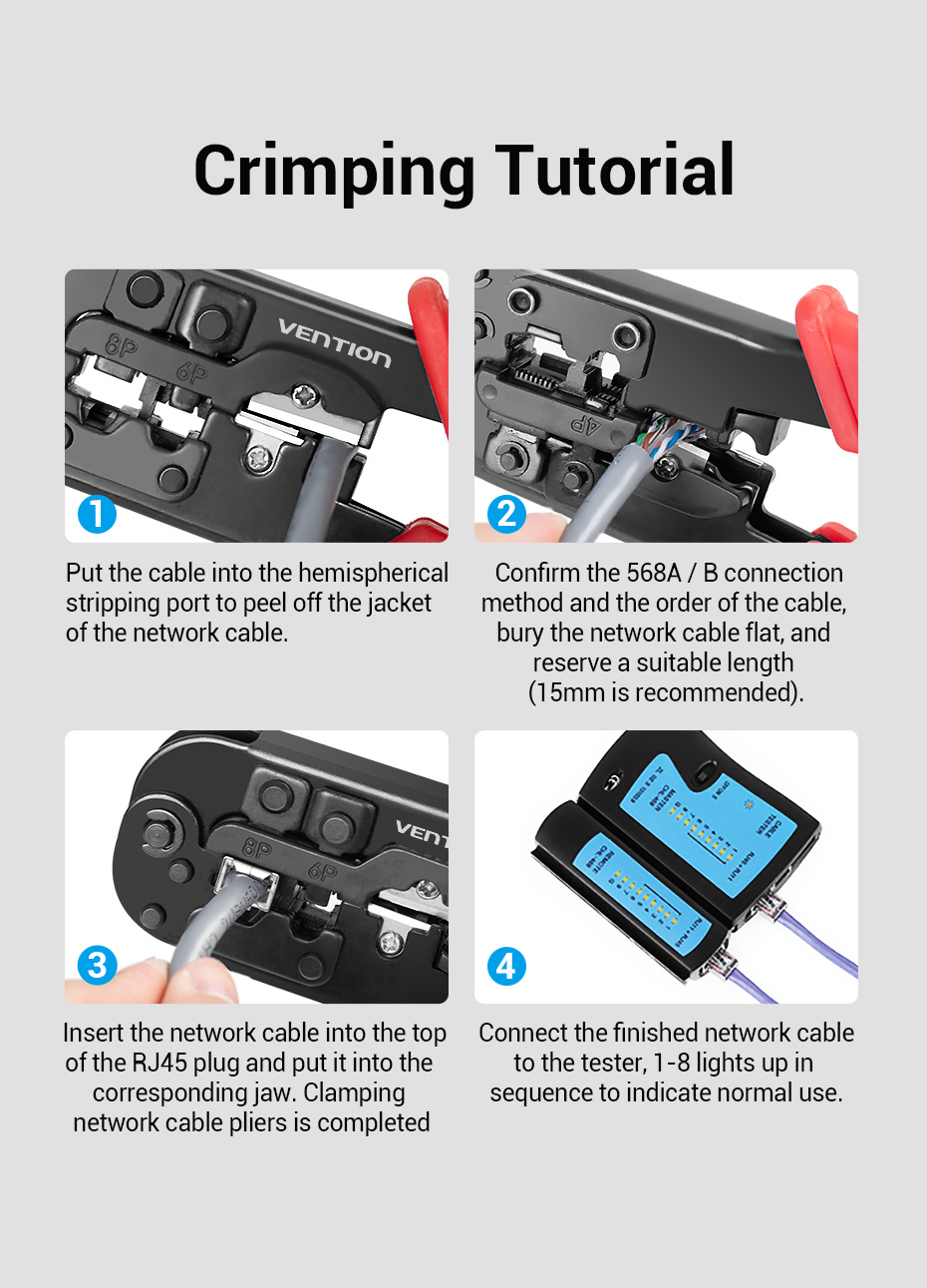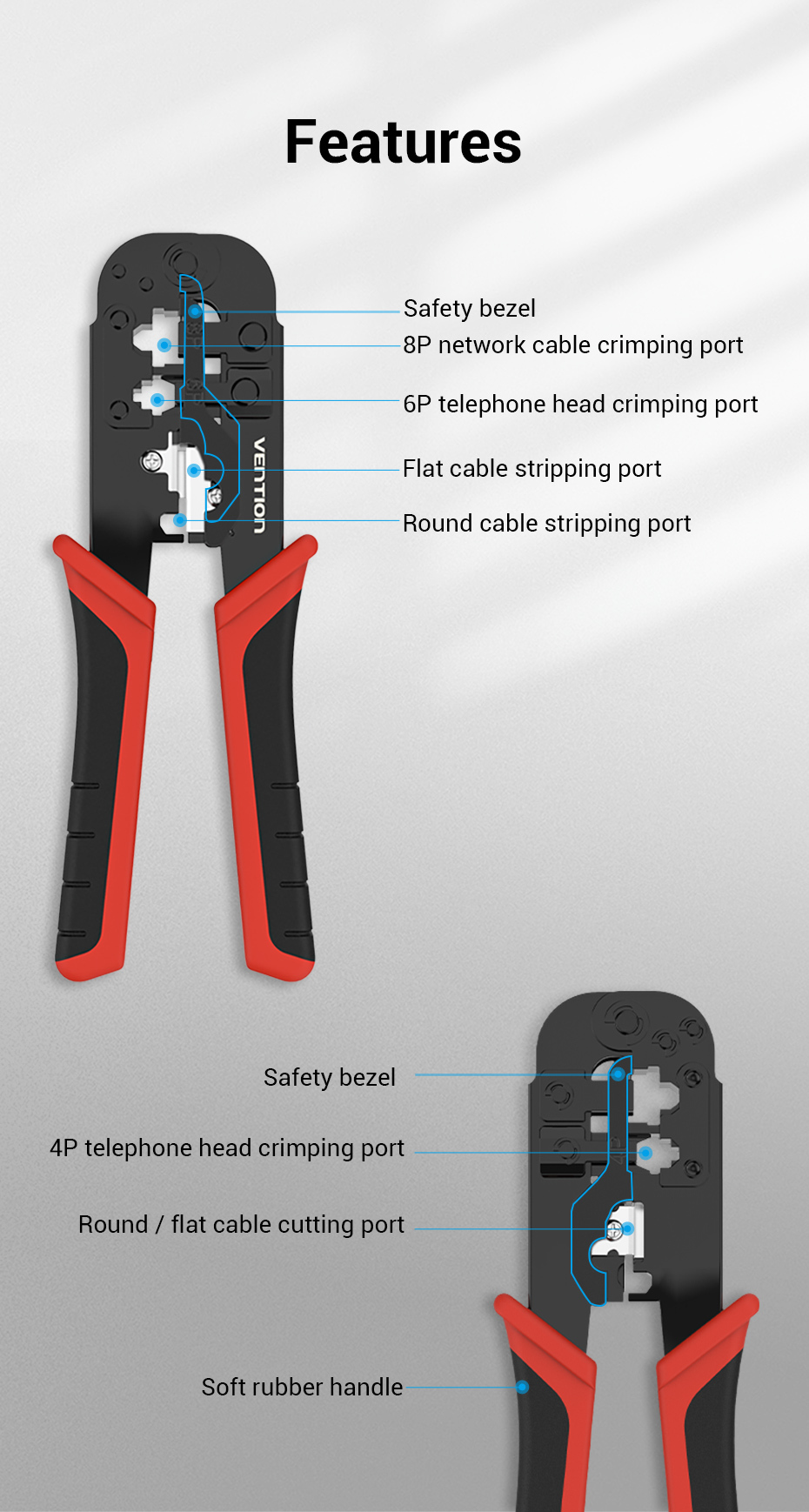 Обжимной инструмент для витой пары RJ45/RJ12/RJ14/RJ11 (8p8c,6p6c,6p4c,6p2c) KEDB0 Vention