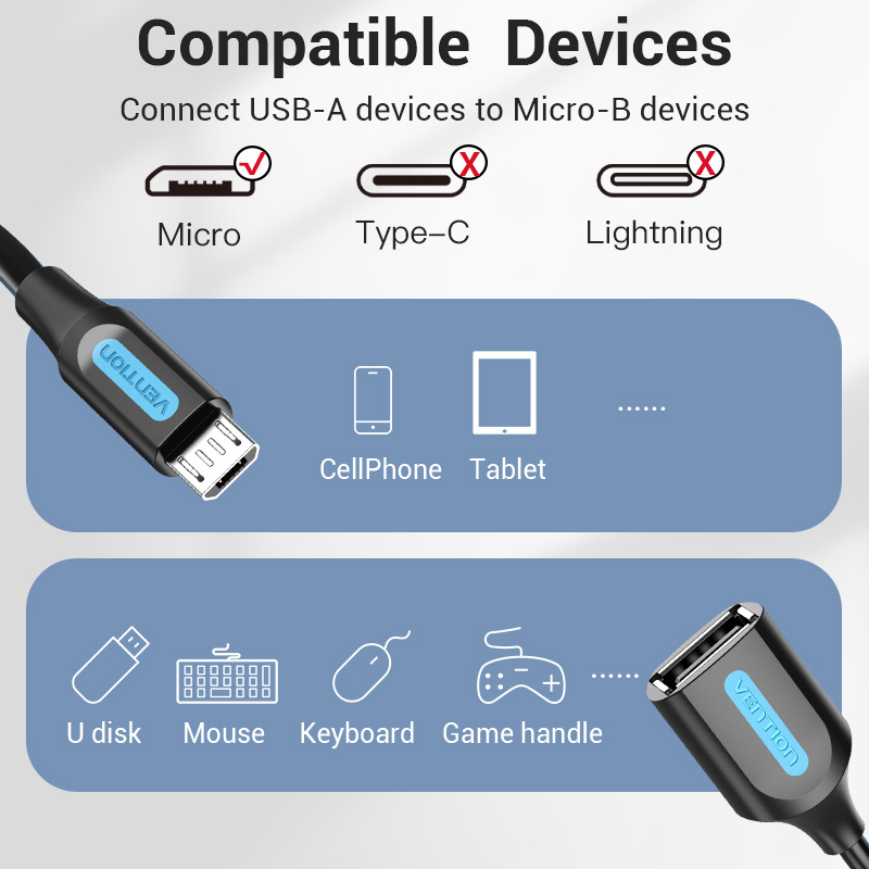 Адаптер переходник Vention OTG USB 2.0 AF/micro B 5pin - 0.15м CCUBB