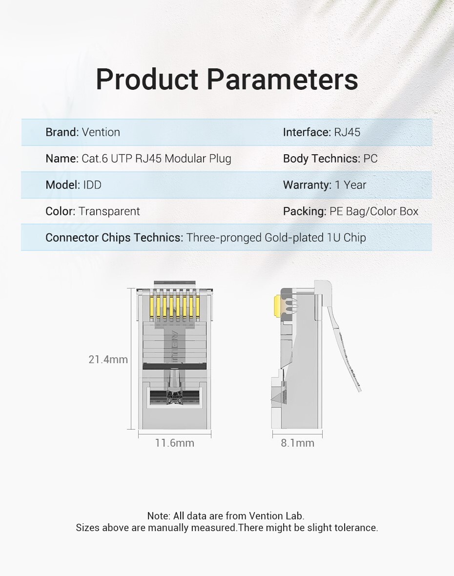 Коннектор RJ45 (8p8c), cat. 6, под витую пару (10шт.) IDDR0-10 Vention