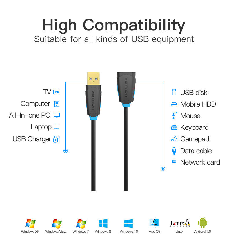 Vention USB 2.0, Grey кабель-удлинитель (1 м)