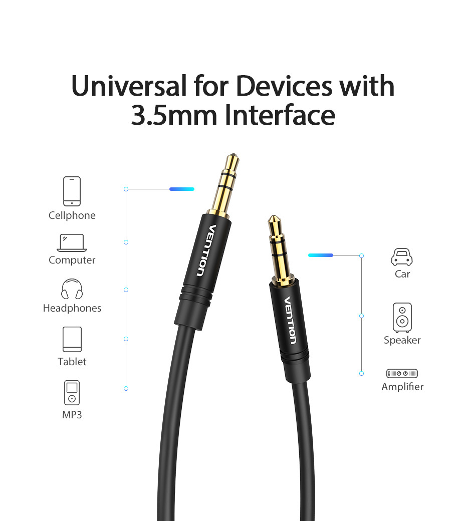 Кабель Vention аудио Jack 3,5 mm M/Jack 3,5 mm M - 1м Черный BAKBF