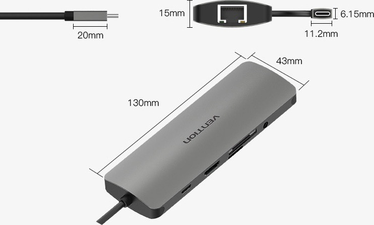 Мультифункциональная док-станция Vention USB Type C 12 в 1 THEBC