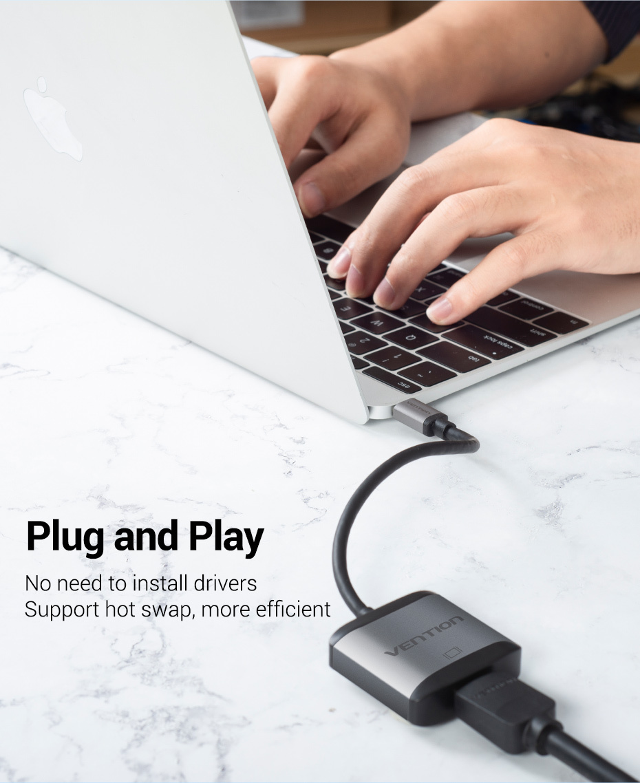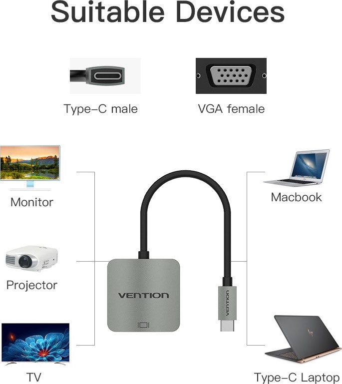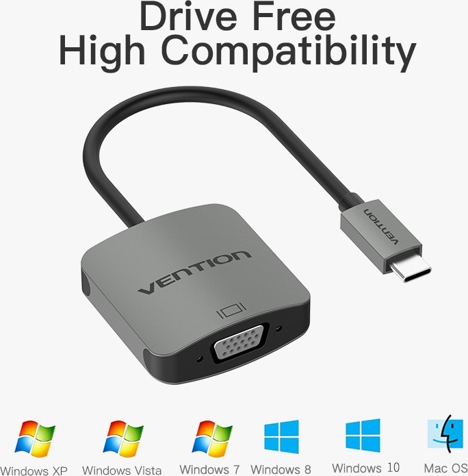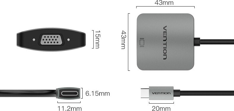 Мультимедиа конвертер Vention USB Type C M/VGA 15F, Серый CGMHA