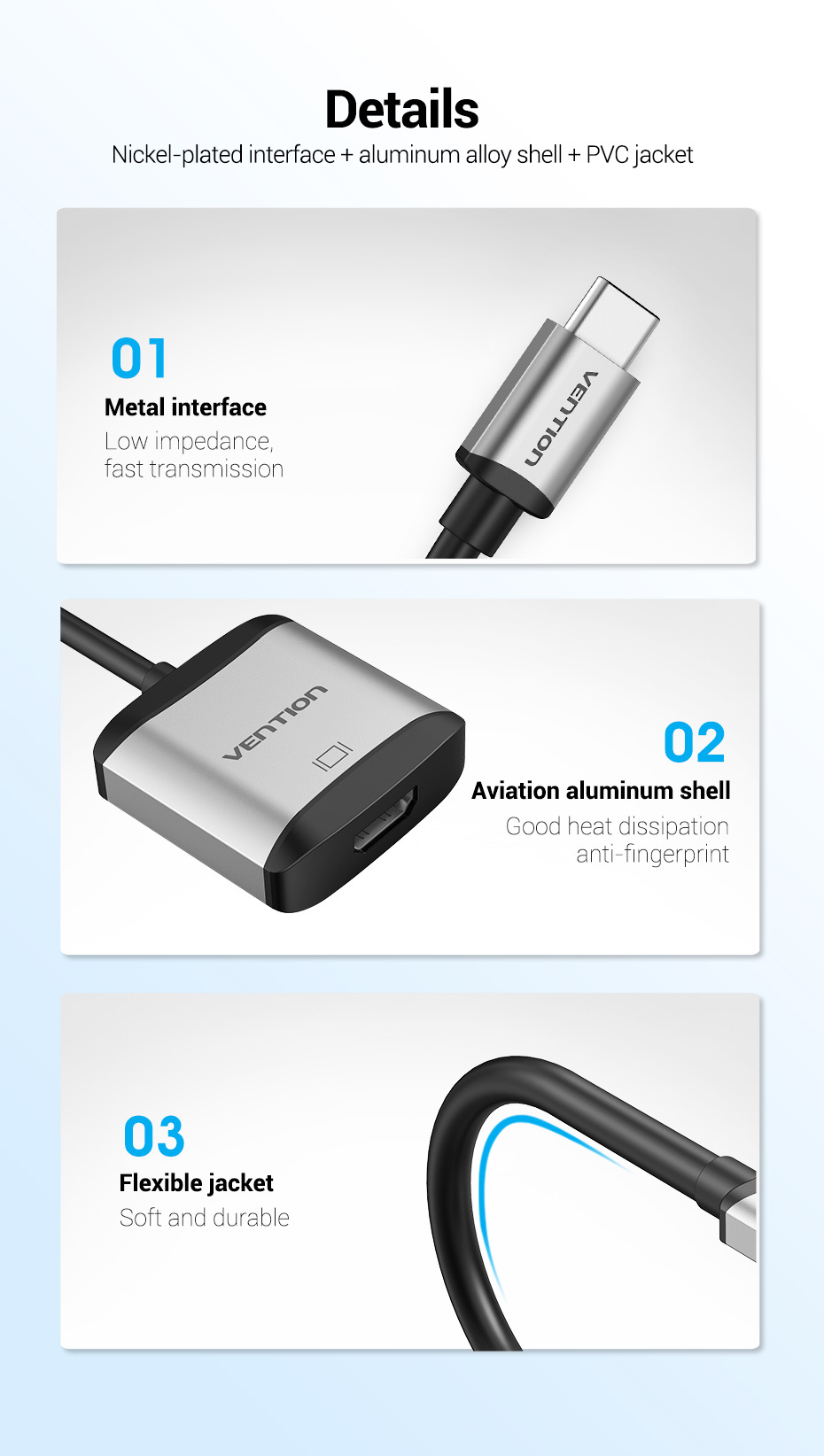 Мультимедиа конвертер Vention USB Type C M/HDMI F, серый TDAHB