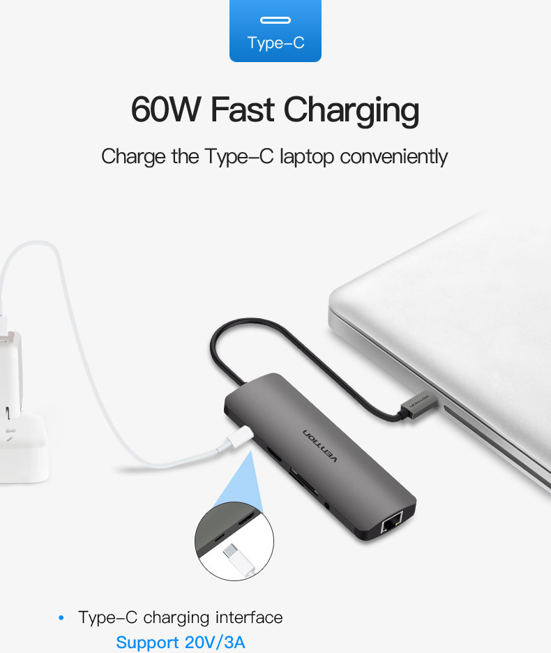 Мультифункциональный хаб Vention USB Type C 9 в 1 CGNHA