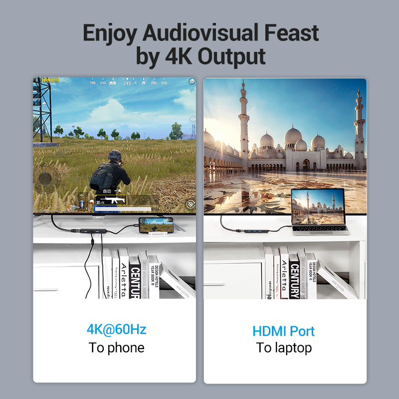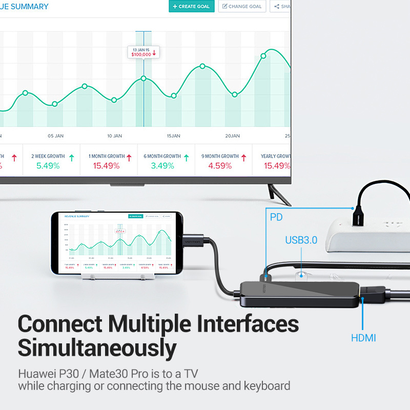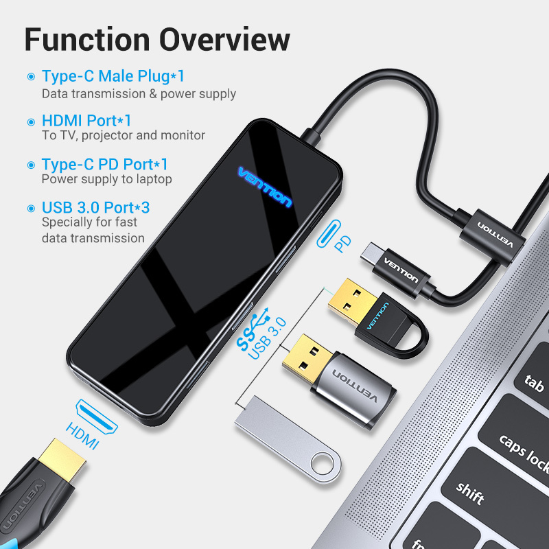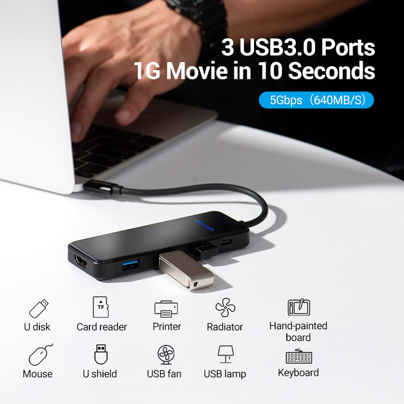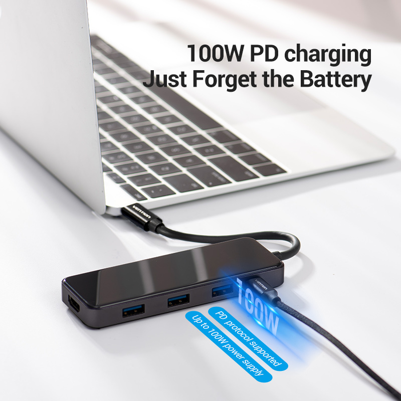 Мультифункциональный хаб Vention USB-C > HDMI v2.0/3xUSB 3.0 OTG/PD THPBB