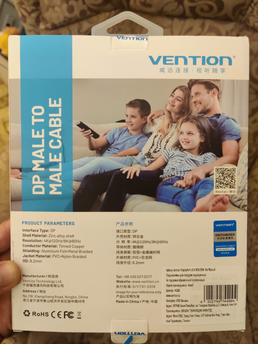 Кабель Vention DisplayPort v1.4 20M/20M 8K - 2м HCABH