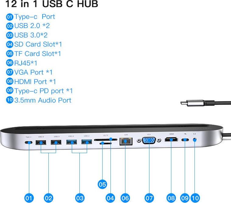 Мультифункциональная док-станция Vention USB Type C 12 в 1 THEBC