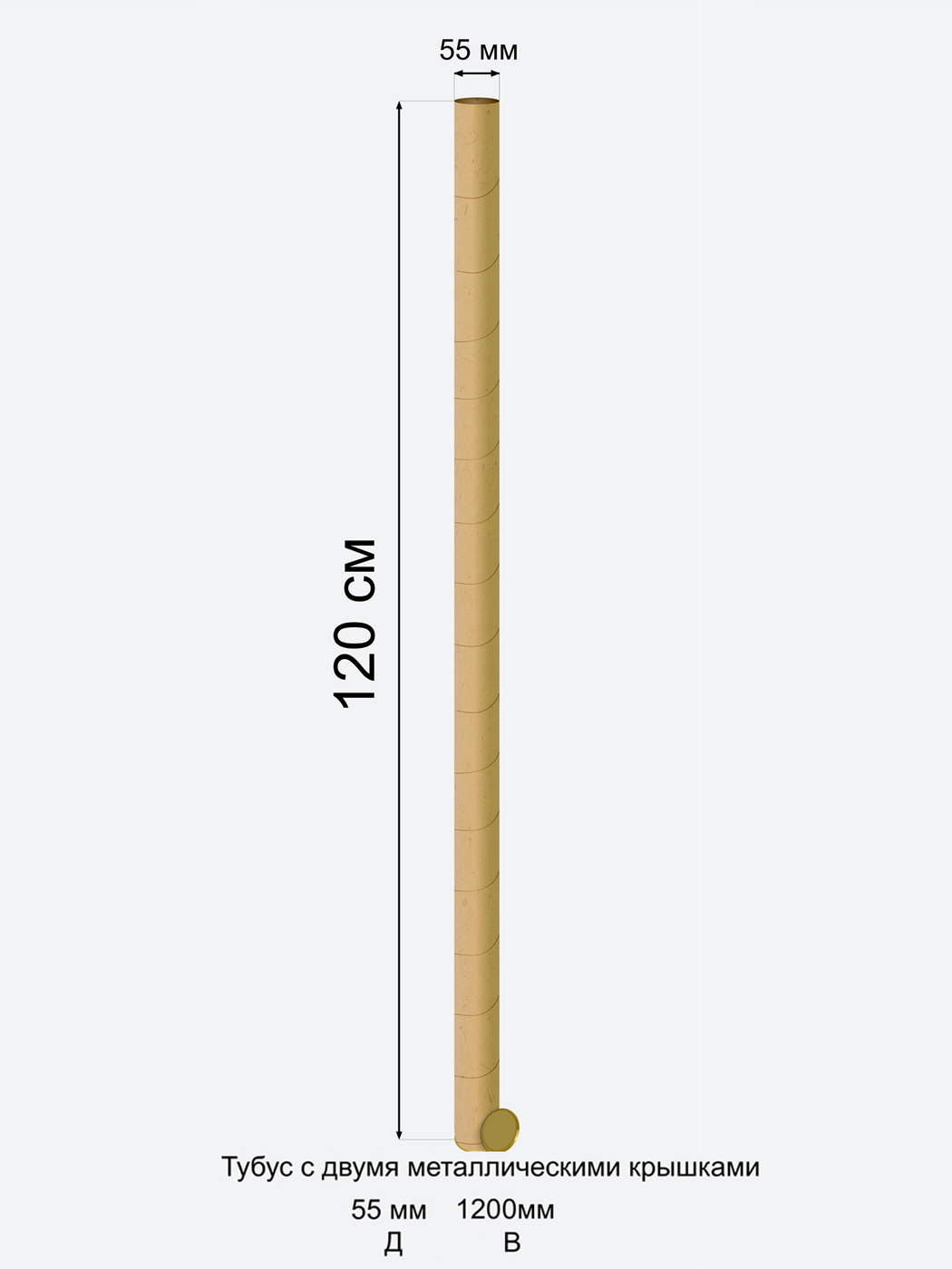 Картонный тубус Verol с жестяной крышкой, 55мм*120см