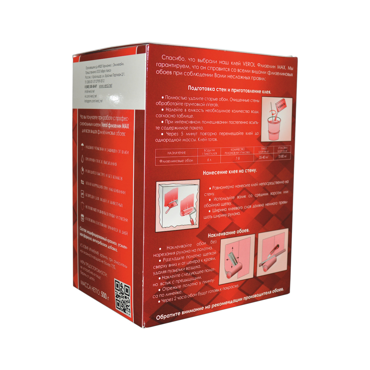 Клей для обоев VEROL Флизелин MAX, 500 г.