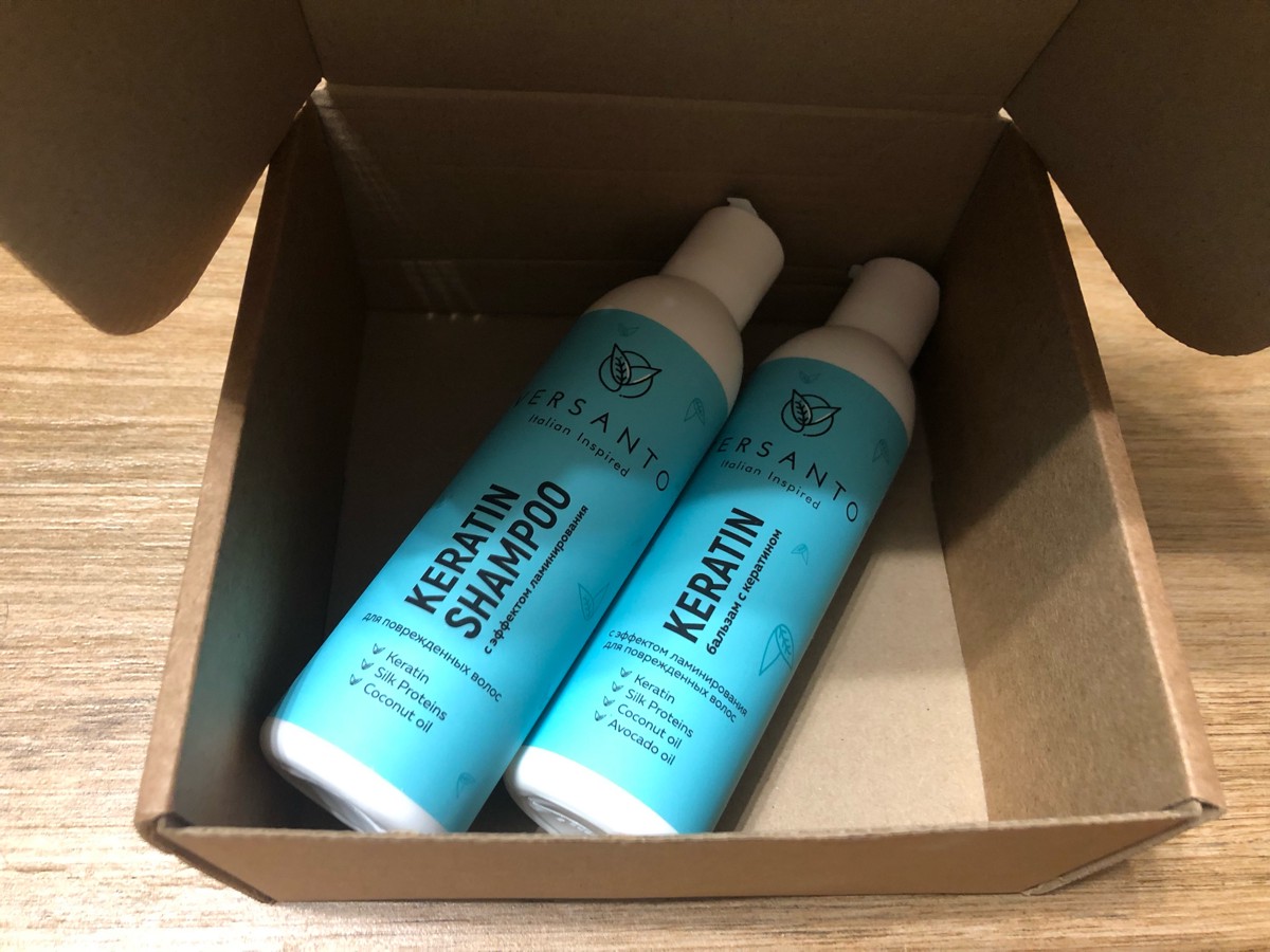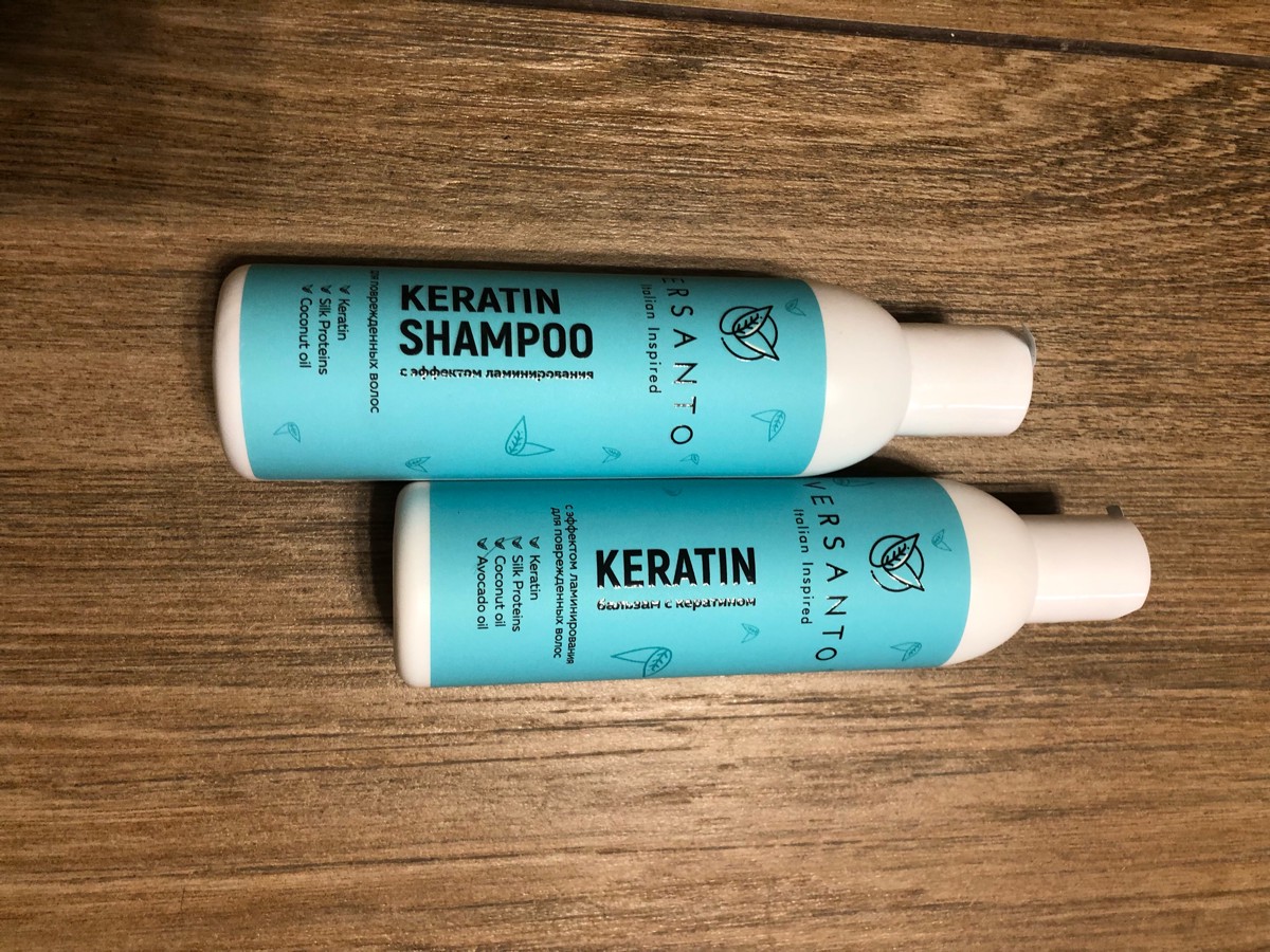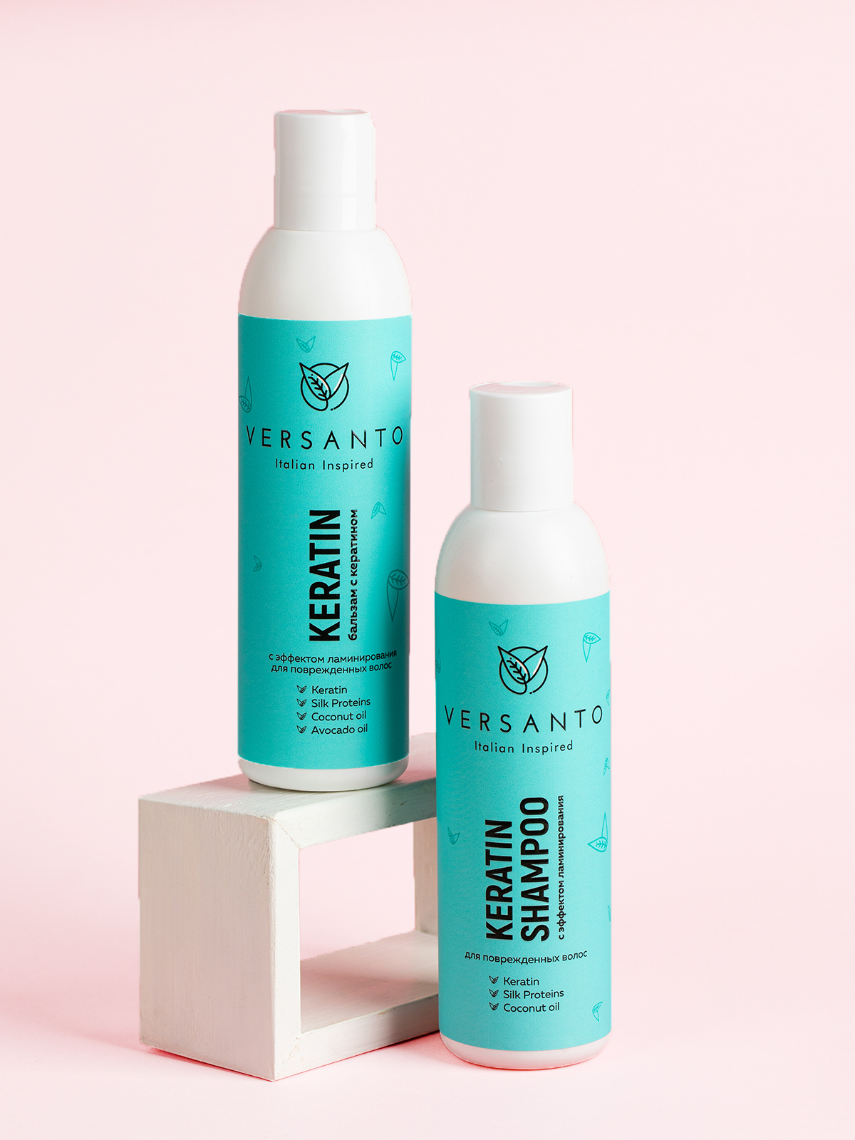 Набор Шампунь + Бальзам с кератином для уплотнения волос VERSANTO 200мл