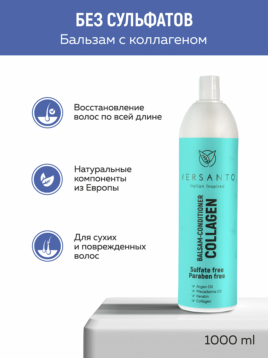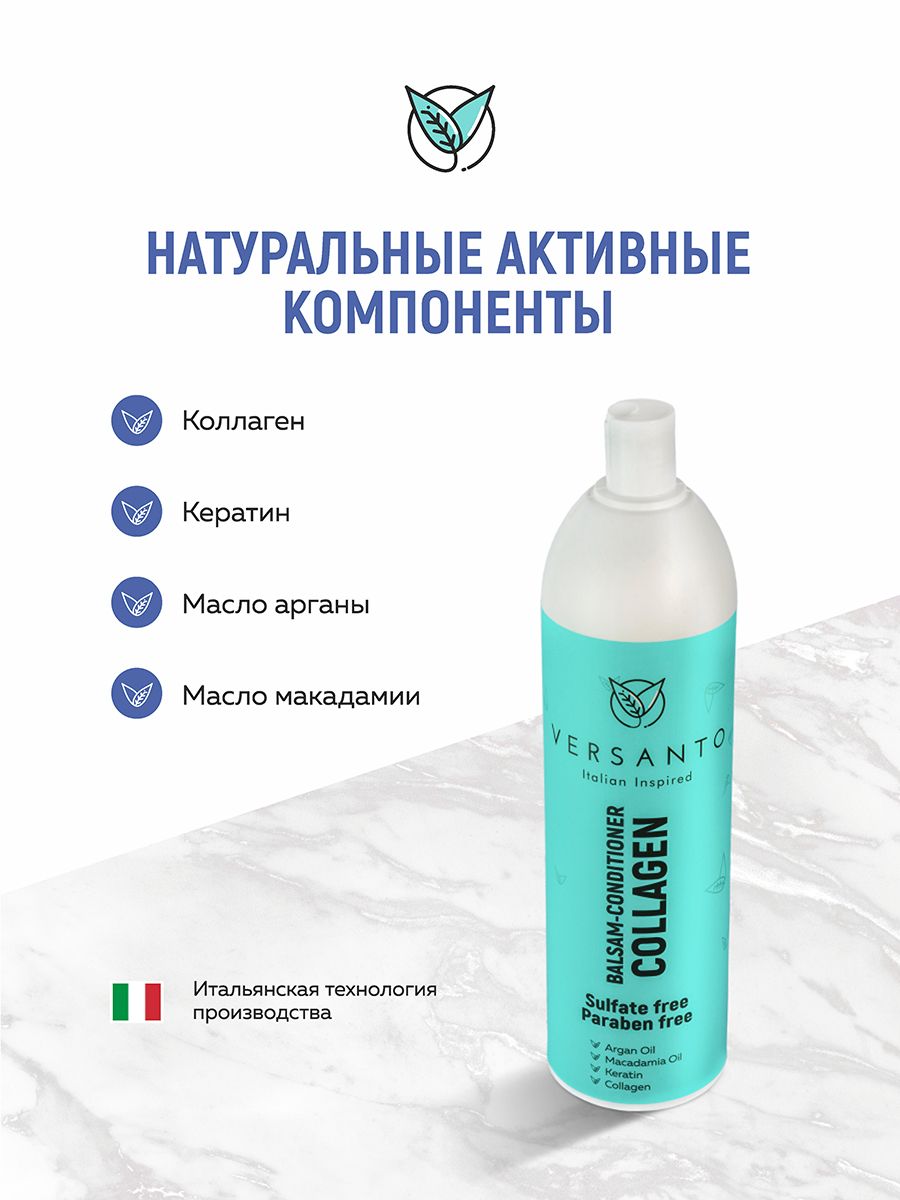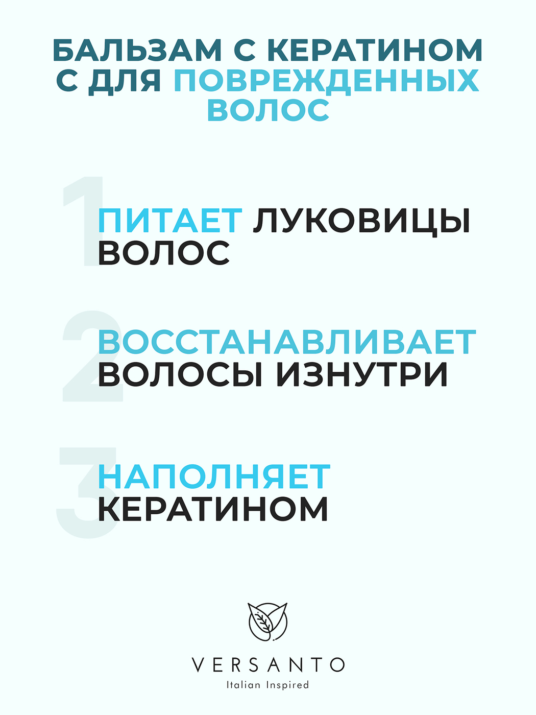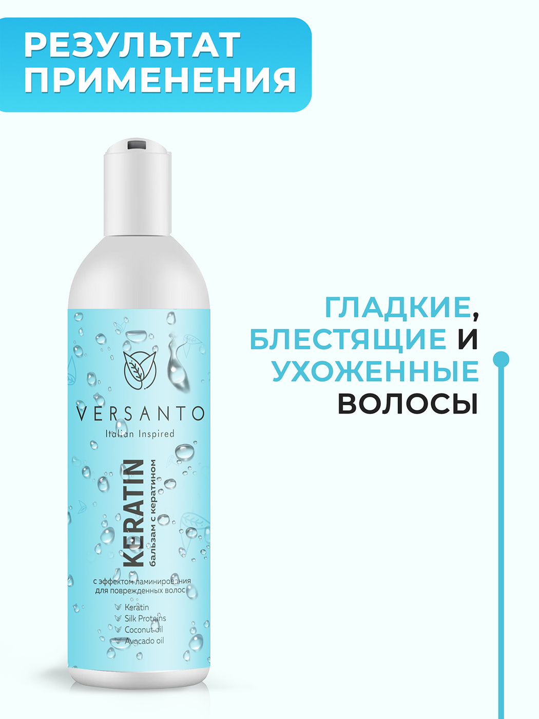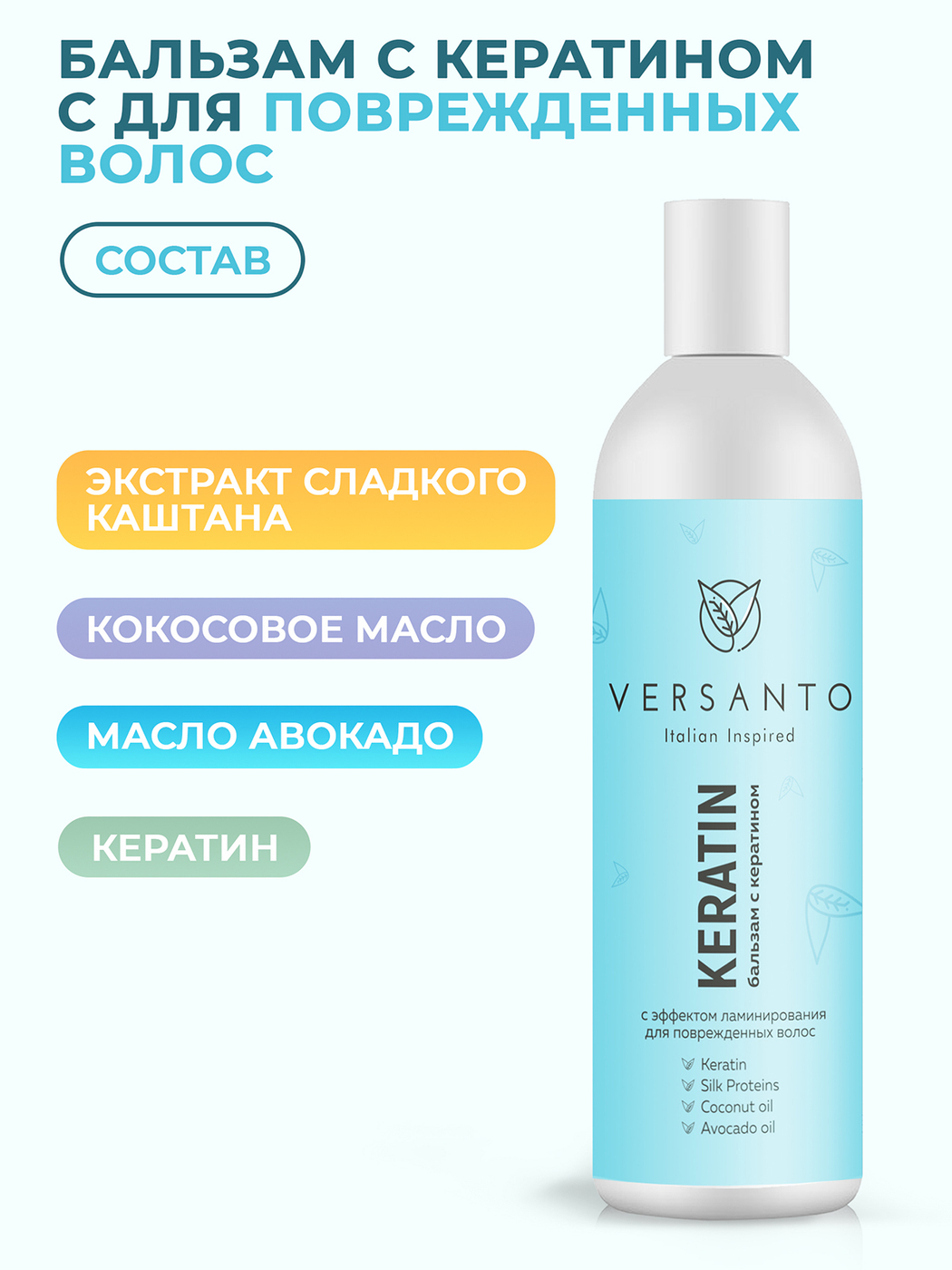 Бальзам с кератином для уплотнения волос VERSANTO с эффектом ламинирования 200мл
