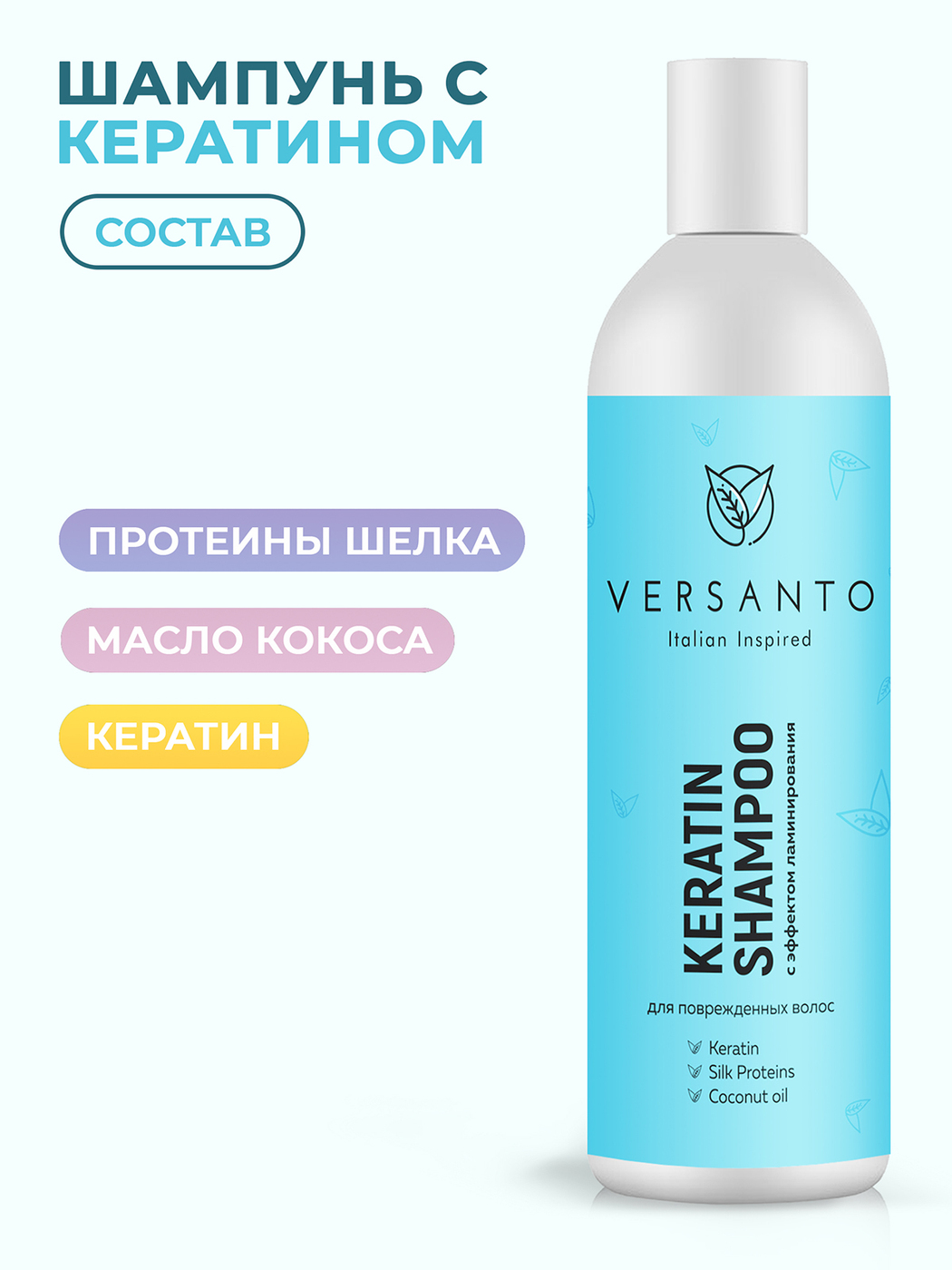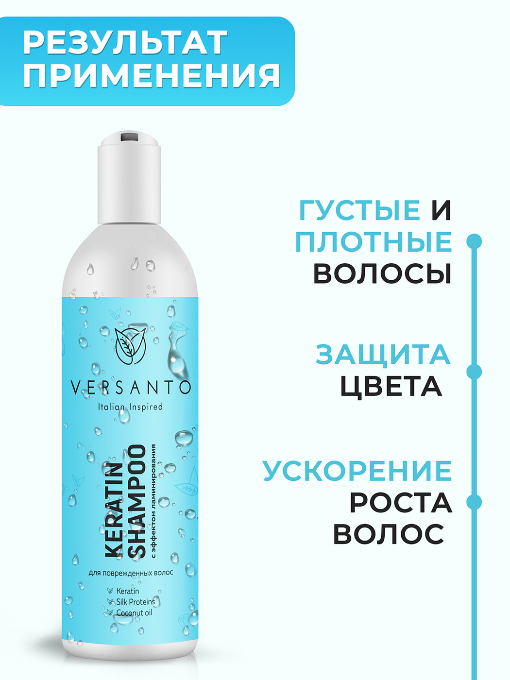 Шампунь с кератином для уплотнения волос VERSANTO 200мл