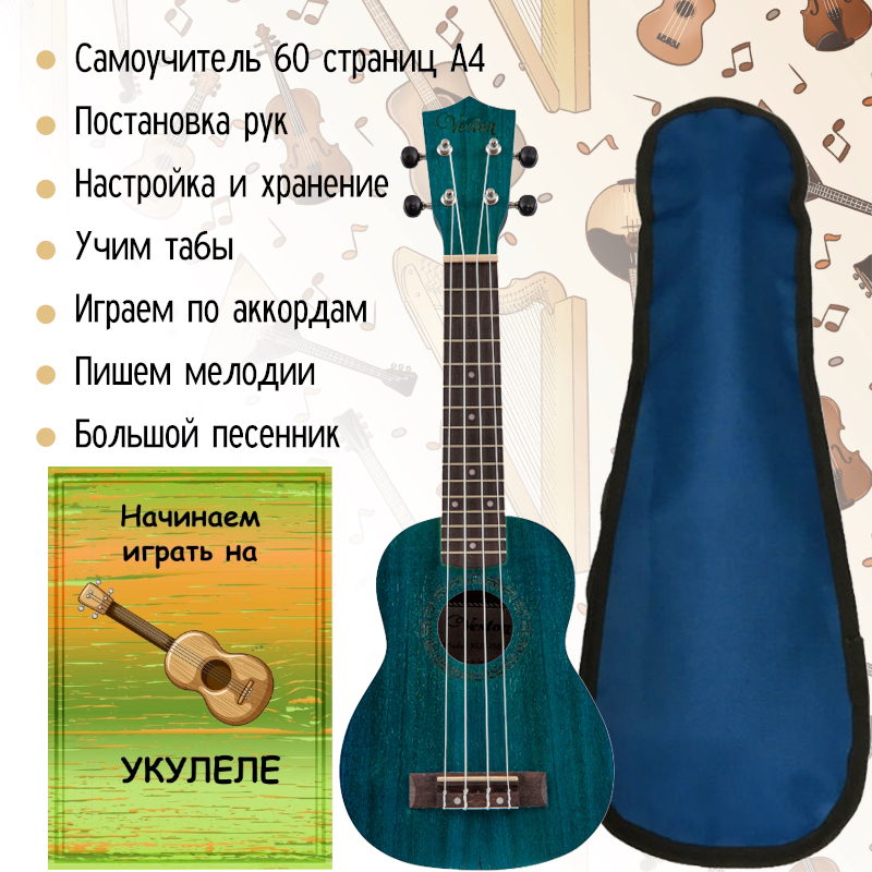 Укулеле Аквамарин Veston KUS-15 BL I с самоучителем и чехлом