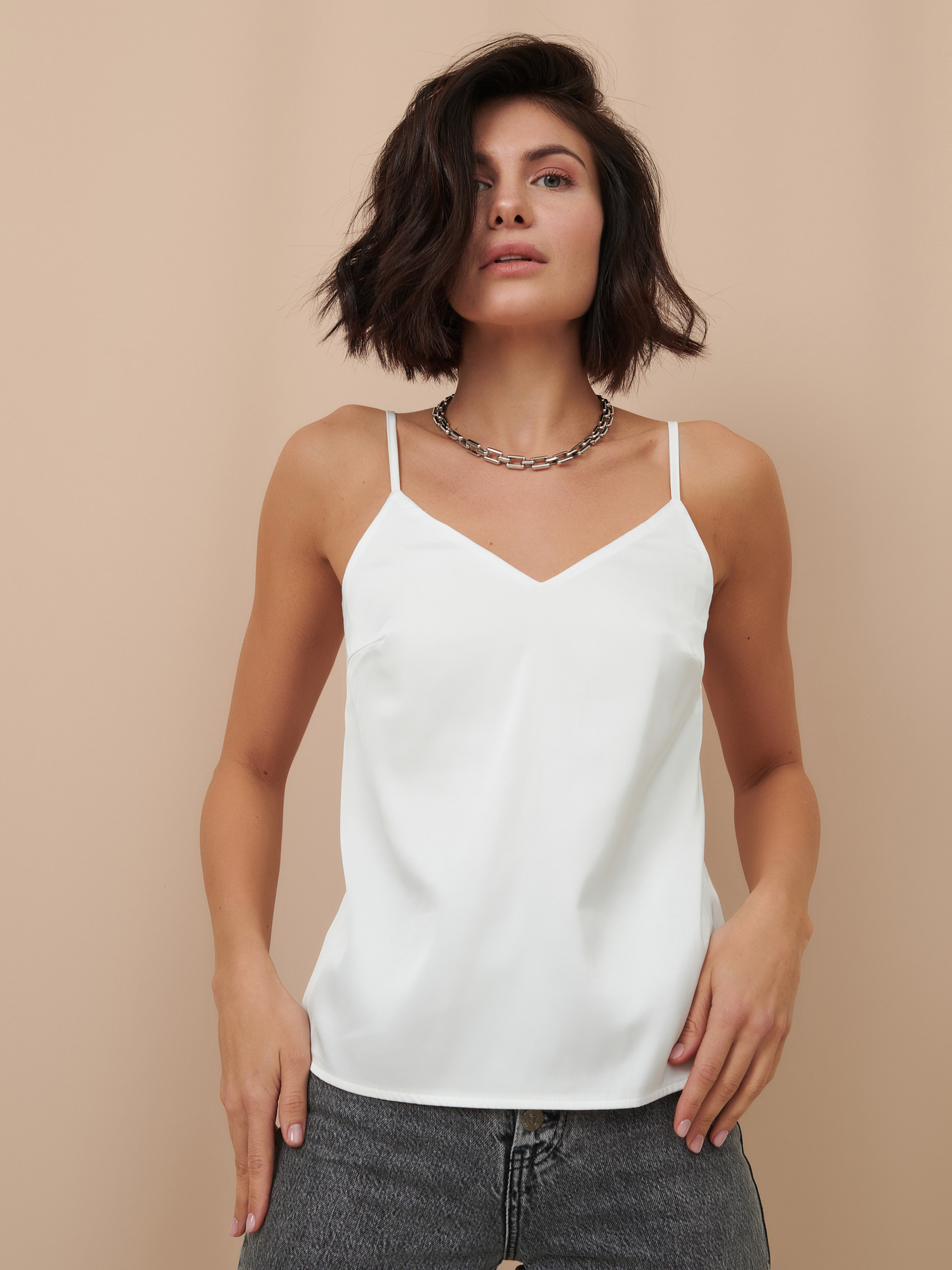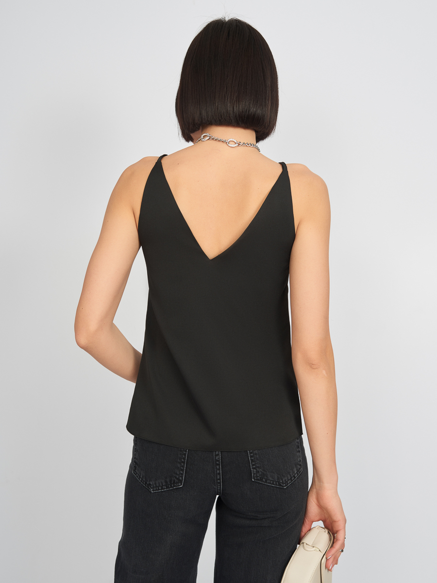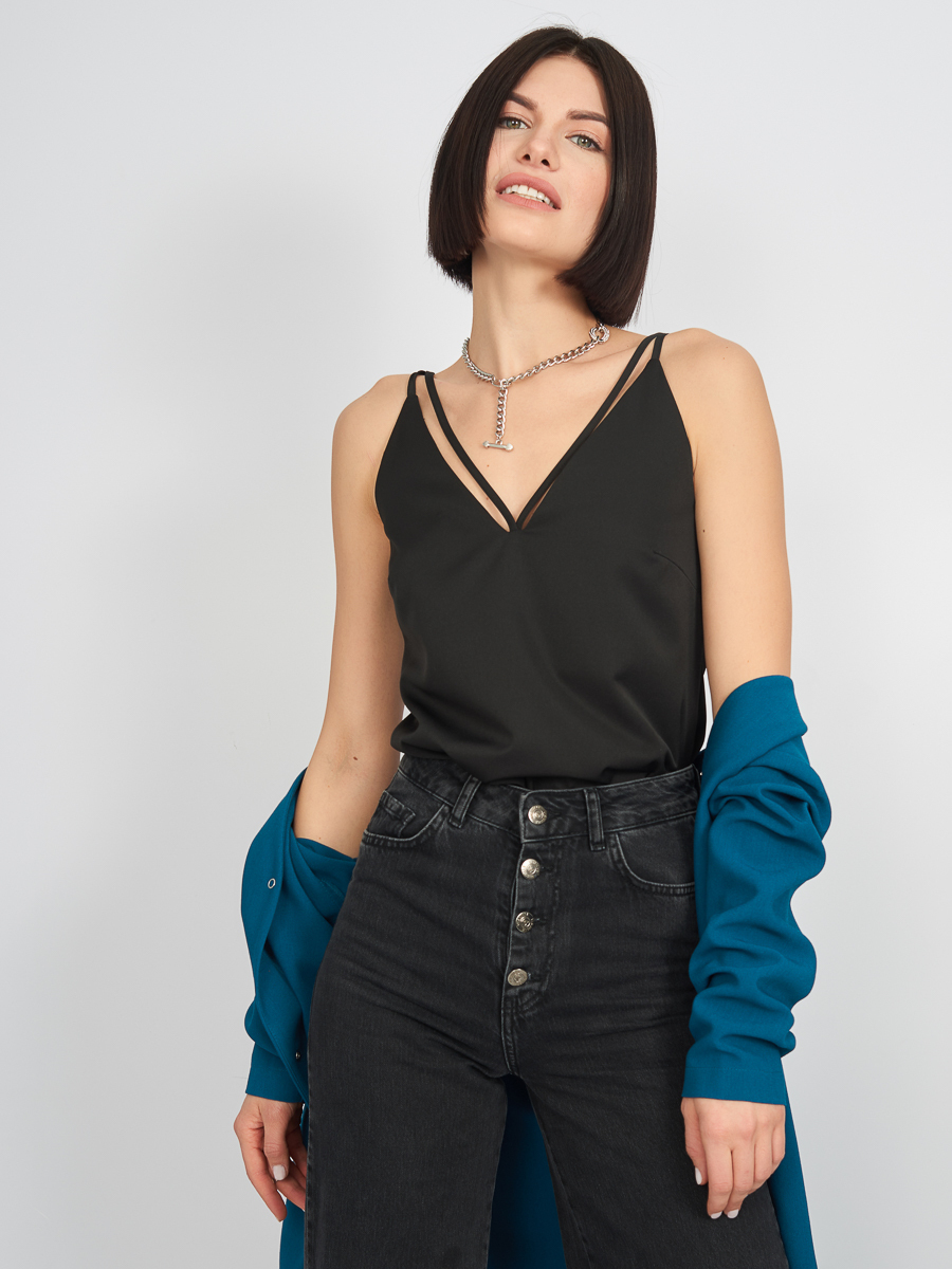 Топ базовый в бельевом стиле на бретелях прямого кроя с V образным вырезом "Кейт"в офис/классический черный
