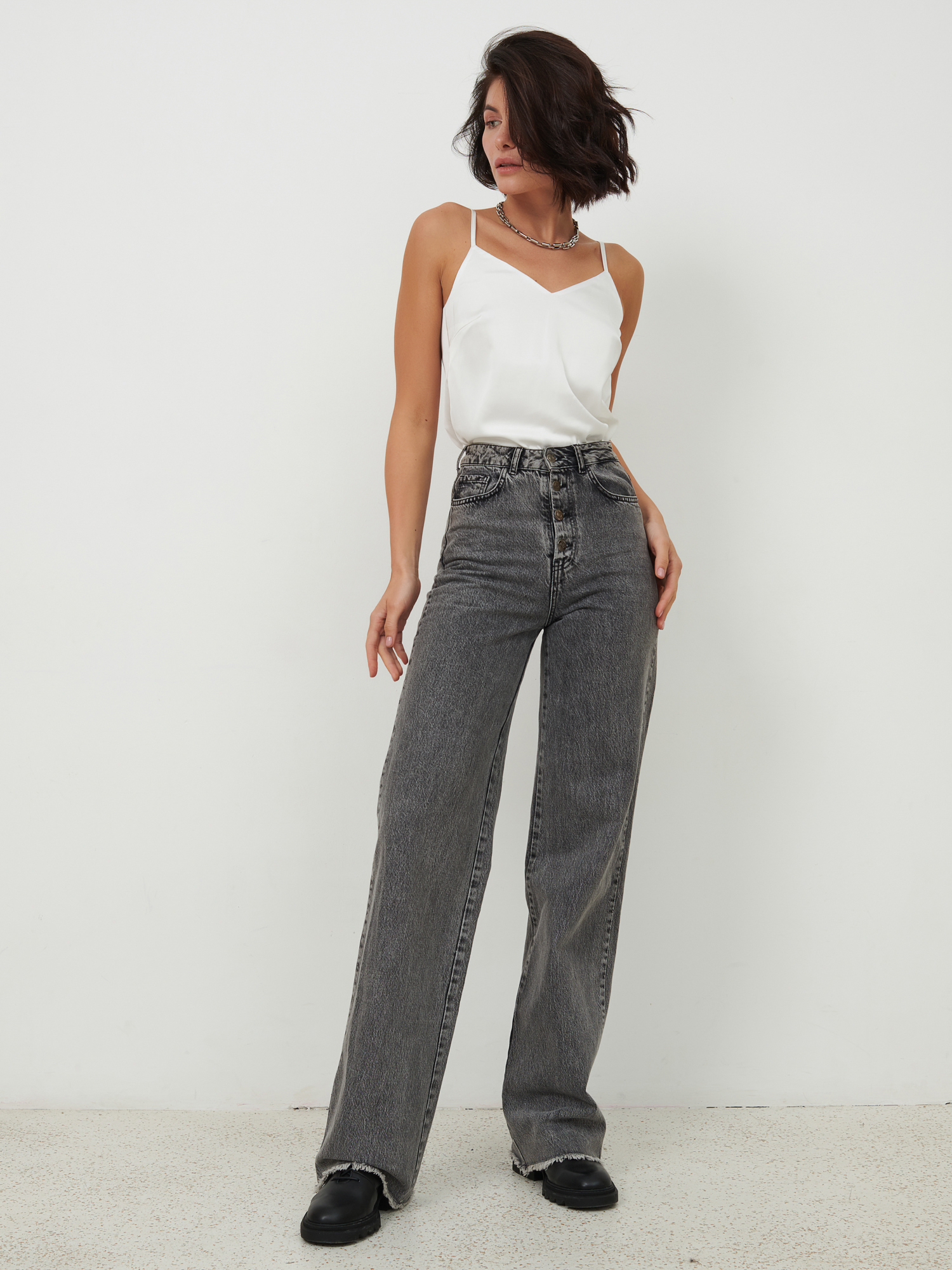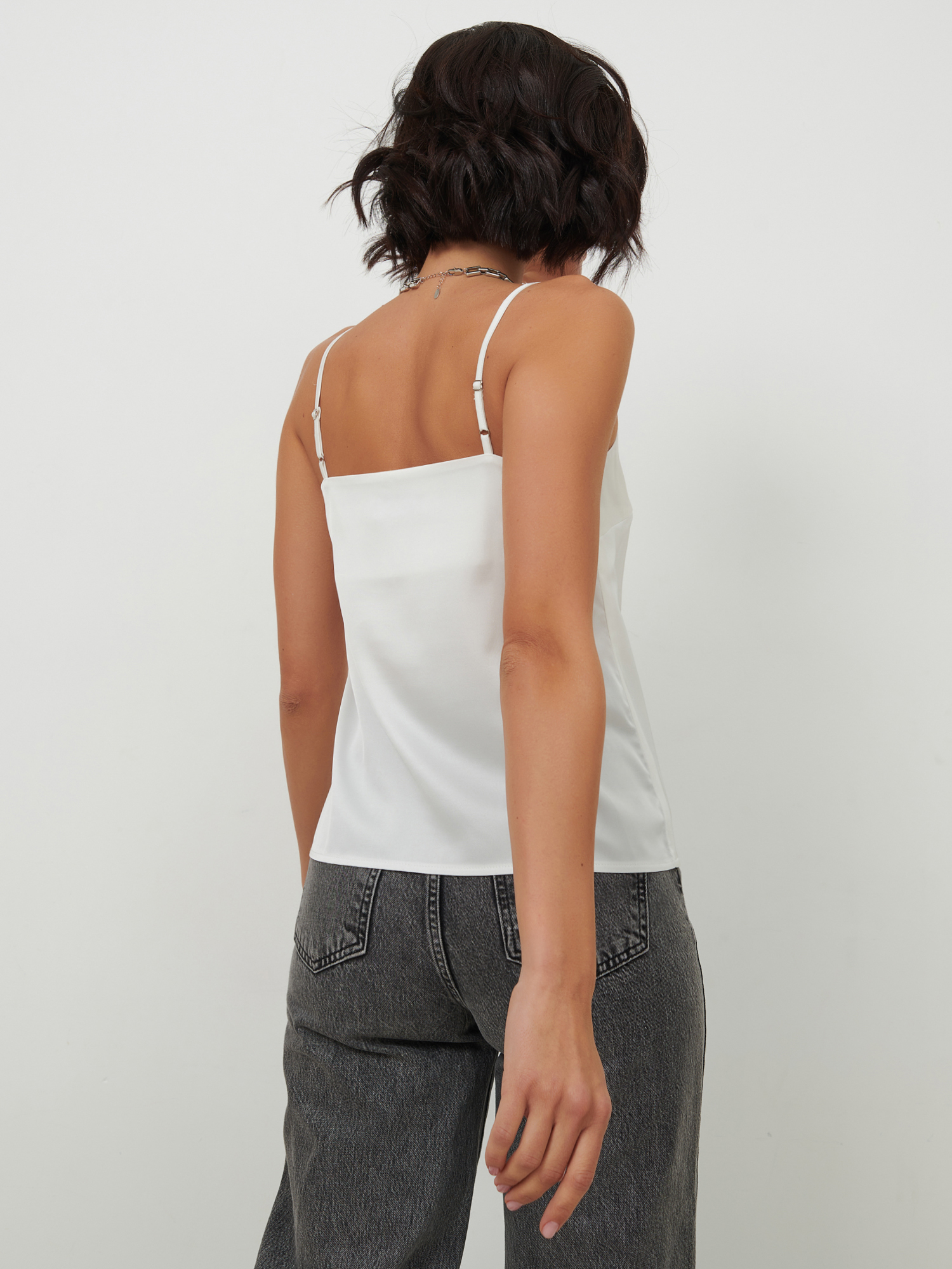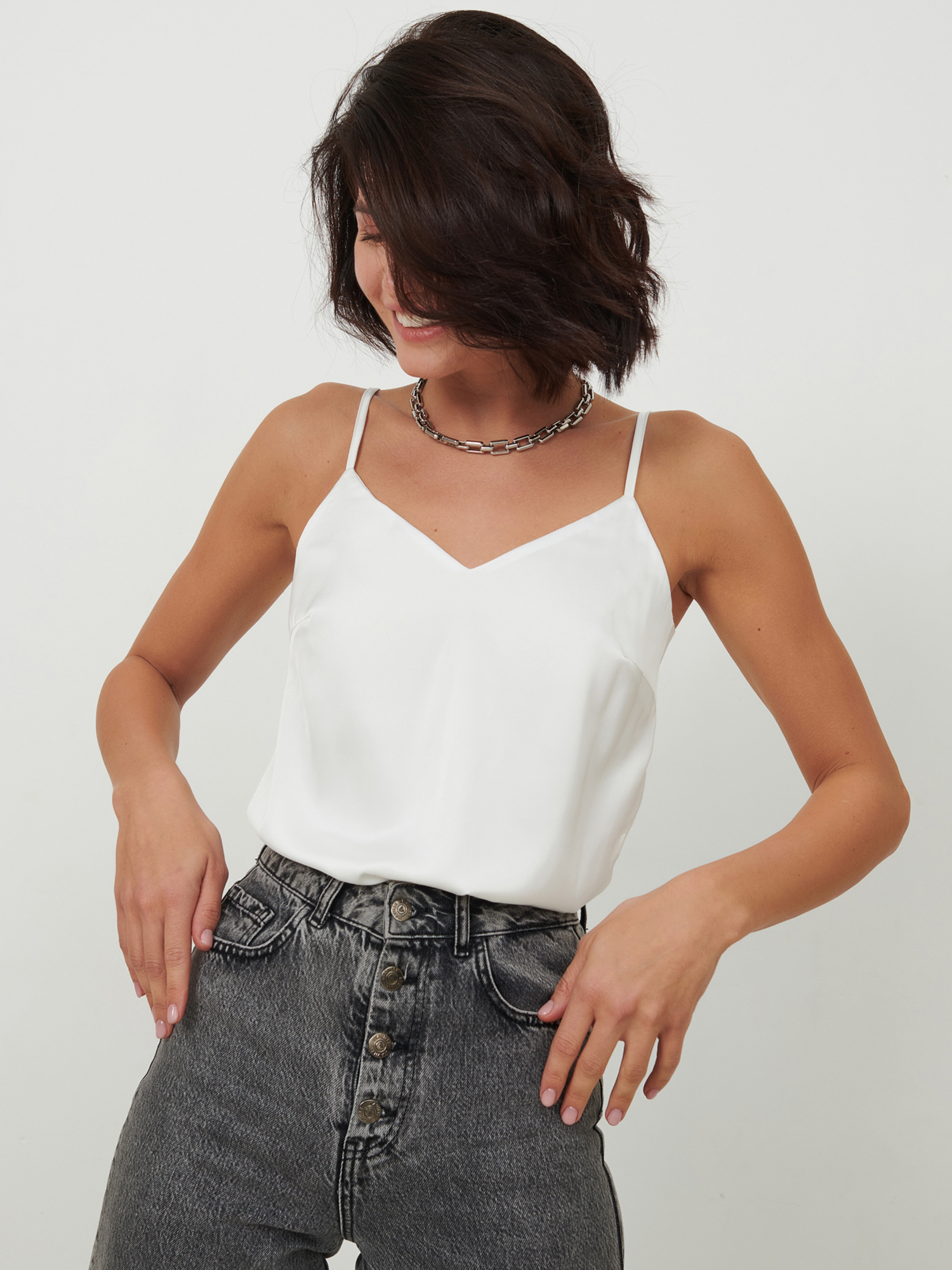 Топ базовый в бельевом стиле на бретелях прямого кроя с V образным вырезом "Кейт"в офис/классический черный