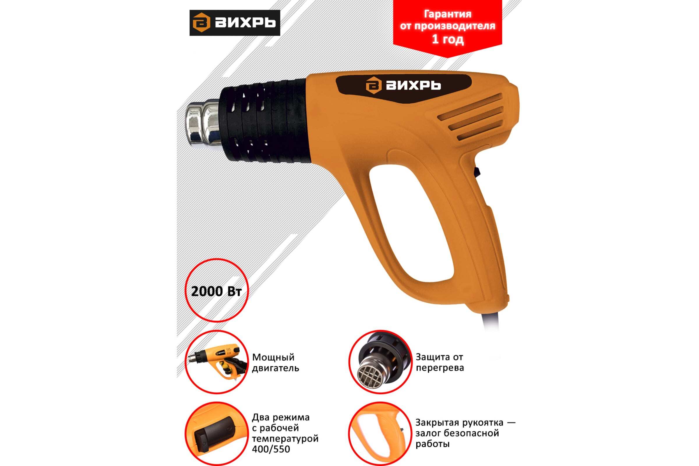 Строительный фен Вихрь ТП-2000 в кейсе+ Перчатки хозяйственные