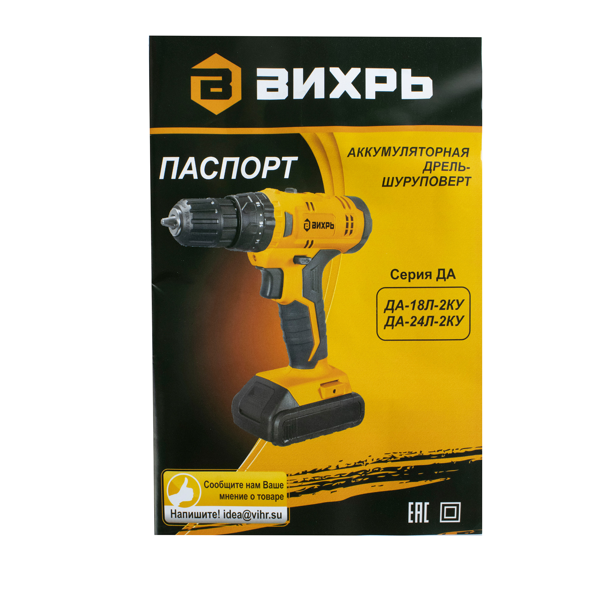 Аккумуляторная дрель-шуруповерт ударная Вихрь ДА-18Л-2кУ