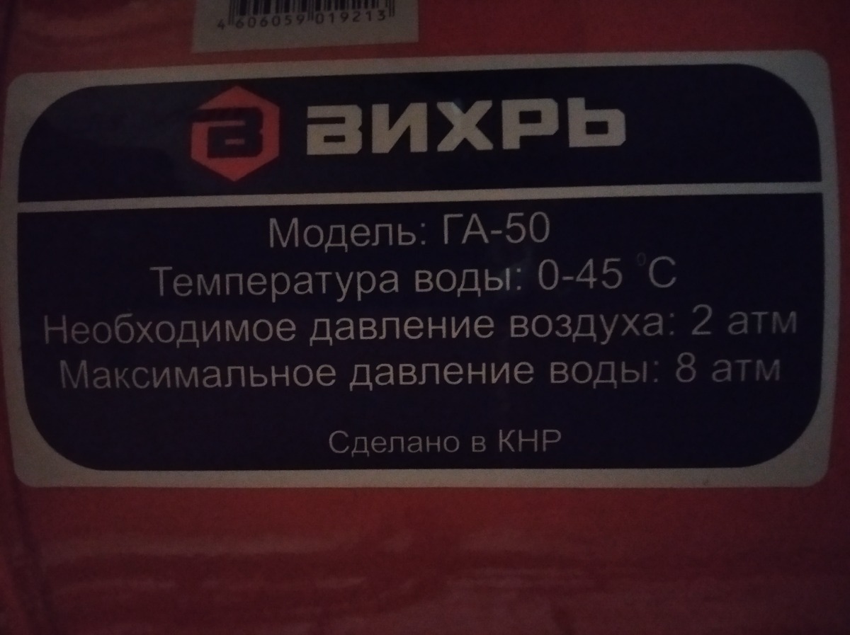 Гидроаккумулятор Вихрь ГА-50, оранжевый
