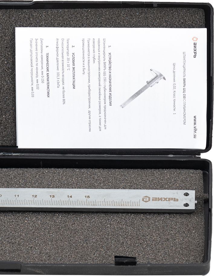 Штангенциркуль "Вихрь", с глубинометром, диапазон измерений 15 см
