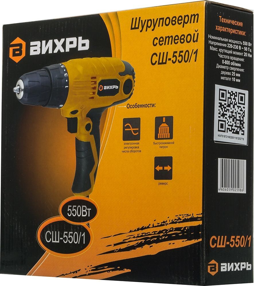 Дрель-шуруповерт Вихрь СШ-550/1, От сети, 20 Нм