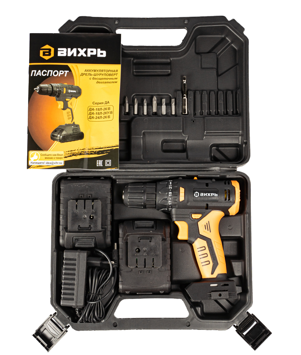 Дрель-шуруповерт Вихрь ДА-18Л-2К/Б, От аккумулятора