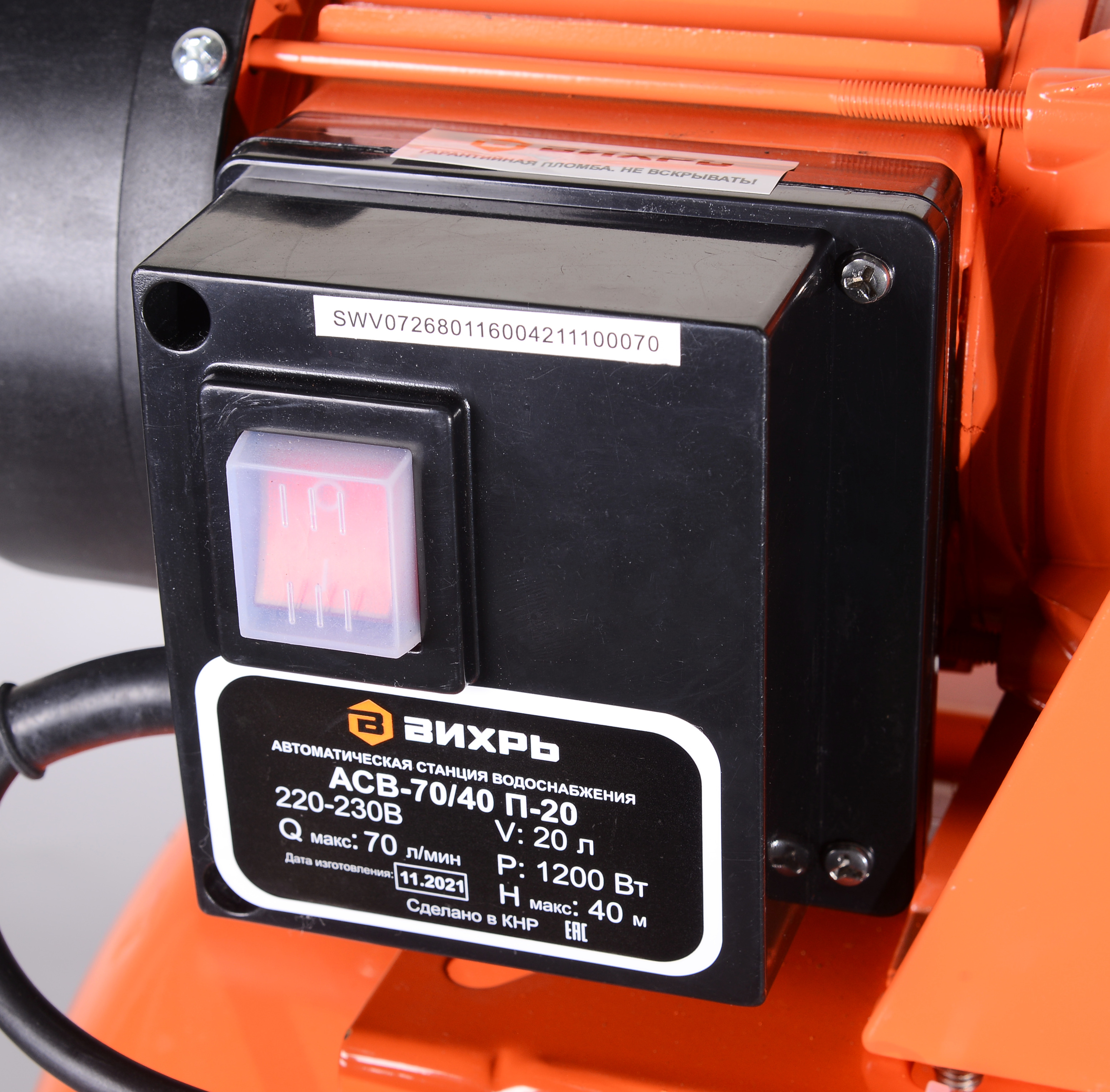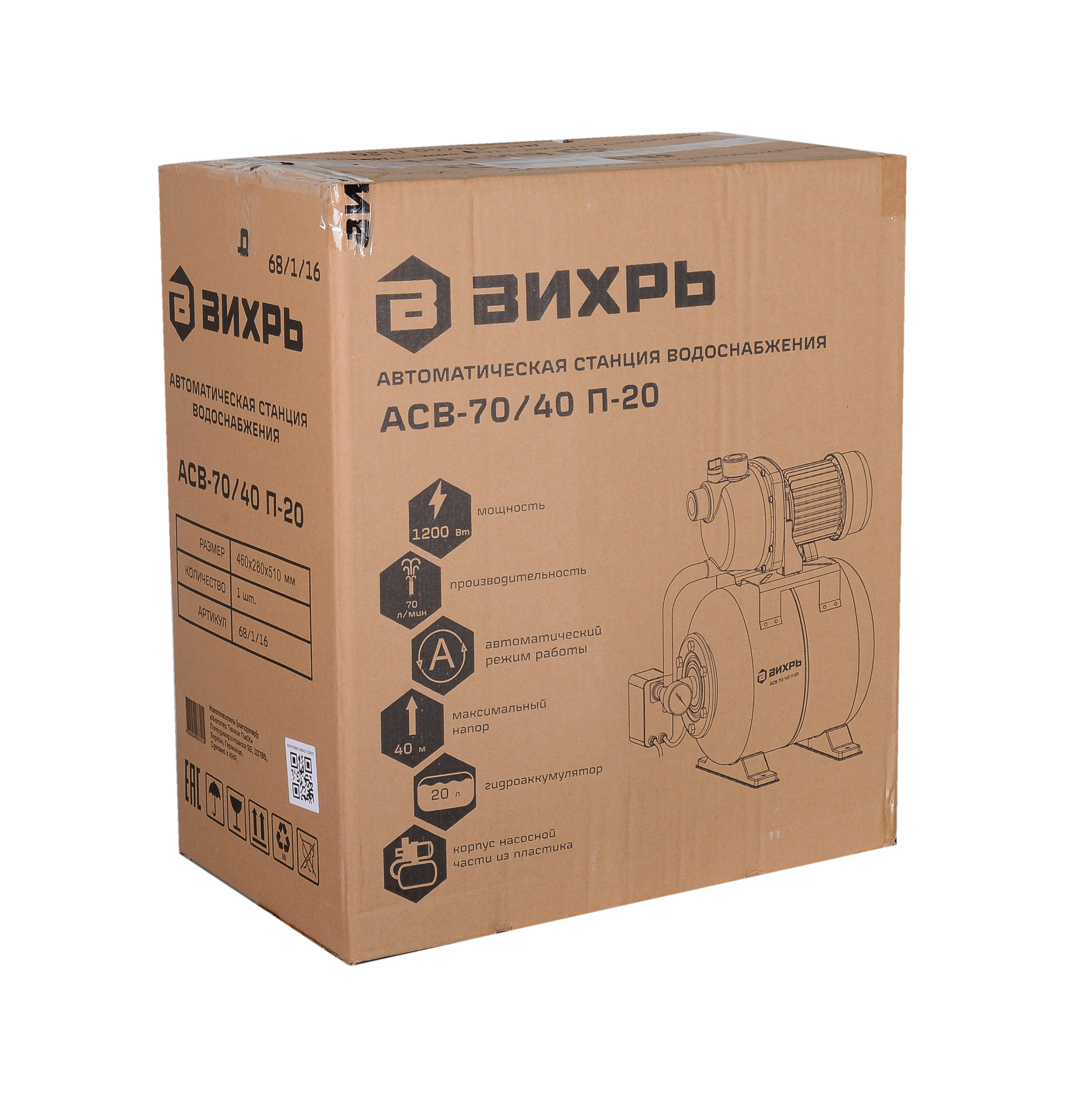 Насосная станция Вихрь АСВ-600/20Н, 600 Вт, 20 л, нержавейка