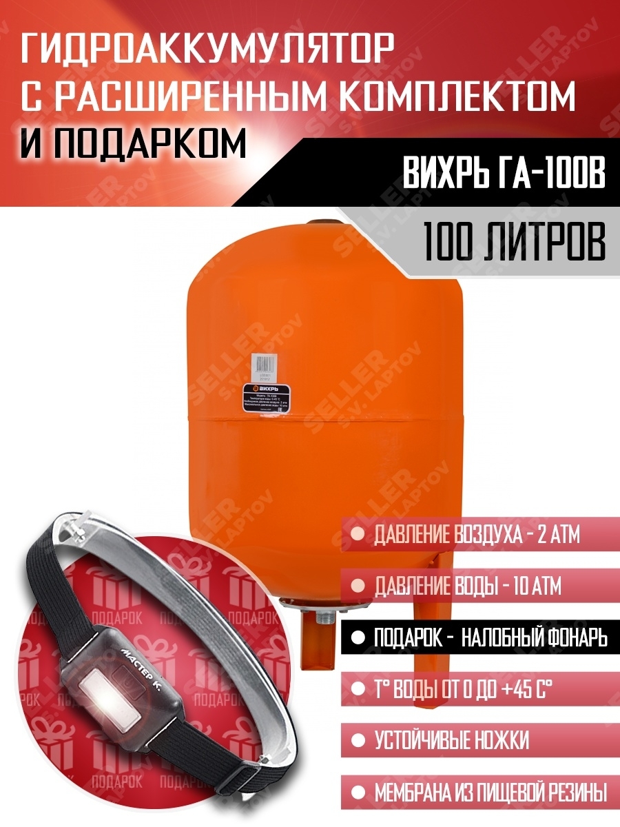 Гидроаккумулятор для системы водоснабжения, расширительный бак ВИХРЬ ГА-100В, 100 литров